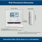 High Compatibility: Forced air (gas, oil or electric), Electric furnace, Hot water steam or gravity radiant heat, Heat only systems, Heat pump w/o auxiliary or emergency heat, Millivolt, Gas fireplaces (24V), Floor or wall furnaces, Cool only systems.(TIP: Before purchasing, check to see if this thermostat is compatible with your system.) Not Compatible: Heat pump with auxiliary or emergency heat, Dual fuel/hybrid heating, Electric baseboard heat (110-240 volts), Line voltage, Convectors, Radiant-ceiling heat, Mini split systems and 12V RV systems. Easy to Install and Use: Large terminal blocks with universal sub-base, can be installed within 30 minutes, clear, easy-to-read backlight LCD display and easy controls make for a user-friendly experience. Simple but Powerful Control: Easy-access front-load battery compartment, adjustable temperature differential (swing) for energy optimization and maximum system life, Support temperature display calibration, Convert °C/°F units, compressor delay protection (selectable on or off). Dual Power Supply: Can be powered by 24VAC power or 2 AAA batteries, No common wire (C-wire) required on most systems (only required on heat only and cool only systems).