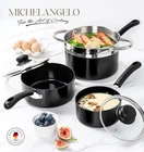 Nonstick Ceramic Saucepan Set with Lid and Steamer in 1QT 2QT 3QT Sizes Easy to Clean
