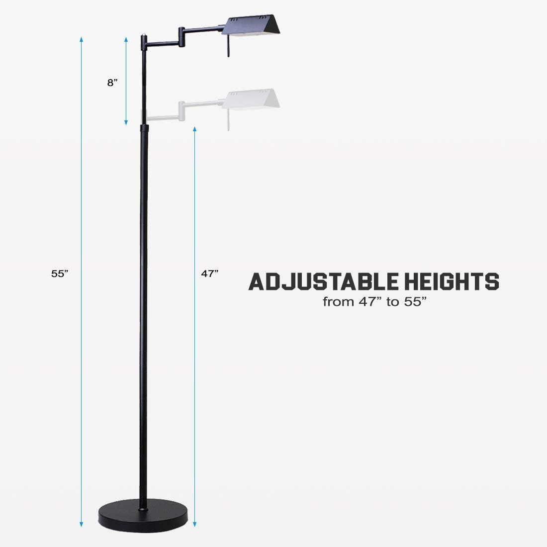 The O’Bright Dimmable LED Pharmacy Floor Lamp is a versatile and energy-efficient lighting solution for any room. With a soft white light color and full range dimming, this lamp provides adjustable brightness for any activity. Its vintage retro style and adjustable height make it perfect for spots like the bedroom, living room, or home office. The touch sensor and push-button control add convenience to its flexible arm and dimmer features. Built with energy-star certified LED technology and a long bulb life, this lamp is a practical and stylish addition to any space. ETL Listed - O’Bright LED pharmacy floor lamp passes ETL Safety Standard Test and has ETL certification. ETL safety standard ensures you a safe product for daily use. Super Bright LED / Energy Saver - The end-table floor lamp is built-in high efficient 12 Watts LEDs with approximately 50,000 hrs lifespan. You will never need to worry about replacing the light bulbs. The LEDs deliver Max.1050 Lumens of brightness (equal to 75W incandescent bulbs) which with ONLY 12 Watts power consumption, which saves you up to 80% of electricity bill, compared to halogen and incandescent lighting. Dimmable / Memory Function - The LED reading lamp is built-in a smart dimmer switch with all range dimming and memory setting functions. Simply long press on the switch button to adjust the brightness and release the button when the light changes to your desired light level. You may dim the light to a soft setting for mood light or reading. Or, you can also change it to a high-level setting when you need a brighter light for craft works or sewing. The dimmer will always memorize your setting. Ultra Flexible Design - Unlike most floor lamps have very limited uses, this LED floor lamp features the most flexibilities. The height of this standing lamp is adjustable. You can adjust the height, from 47” to 55”, to fit your different needs. Besides, its unique swivel head and 360° swing arms allow you to easily move the light to any directions you want. Turn it upwards if you need indirect light, or tilt it down when you need a reading light. 100% Made to Last - This swing floor lamp is 100% made of metal! Its metal lamp shade provides high efficient heat radiation and helps extend LED lifespan. Besides, the weighted metal base and strong tubes will firmly hold the standing light. You can smoothly swing the arms to move the light with confidence! This sturdy metal floor lamp not only represents durability and safety for daily use but its sleek vintage design brings an elegant retro fashion to your home decoration!