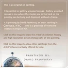 nn205 UNTITLED nn205 2024 Oil Paint on Gallery wrapped canvas Stretched canvas dimensions: 8 by 8 by 3/4 in. (20.5 cm by 20.5 by 1.9 cm.) [Please allow me a few days to package and ship these oil paintings -- thank you!] signed with initials on front and full signature on back Note: I am very happy to entertain all offers on paintings. Every offer received is always considered a compliment. - DP Note: I am very happy to entertain all offers on paintings. Every offer received is always considered a compliment. - DP S C R O L L D O W N T O V I E W M O R E D E T A I L I M A G E S To sign up for the weekly newsletter of new auctions and paintings in the eBay store Title and Provenance This painting is entitled UNTITLED nn205 , and includes the original signature of artist on front of painting and verso, with painting catalogue series and number applied on verso. Painting also includes a Certificate of Authenticity documenting chain of title and provenance for this work. Painting number nn205 may be included in forthcoming Catalogue Raisonné of the works of DAVID PADW0RNY. Medium and Dimensions Oil Paint on canvas of 8 by 8 by 3/4 in., including hanging clip. This painting is pre-stretched and sides of the canvas are painted (see images below). Each of the sides are painted differently, to read more about why each is painted in a unique manner please click here . The staples holding the canvas to the stretcher bars are on the back so the painting is ready for immediate display. Shipping notes: We are pleased to combine shipping. If you intend to buy/bid on additional works, please send email to let us know your preferences. If you would prefer overnight or expedited shipping we will be happy to accommodate your wishes - please email for a specific bid. If you wish to combine shipping -- please request that the future invoices be changed to reflect combined shipping. For more details on combined shipping please visit these links based on your location: United States , Canada , all other International . Payment: PayPal is preferred. Paintings will ship upon bank clearing your funds. Please make payment within 5 days of sale. If there are special circumstances that might prevent this -- please email prior to sale. Thank you. Guarantee: If for any reason the actual painting does not meet your full expectations, please return it upon receiving it in its original condition and packaging materials. We will refund the full cost of the painting, less shipping costs. Additional Images and Materials (All links below will open in a new window) About The Artist DAVID PADW0RNY was born in Norristown Pennsylvania. He is a graduate of the Maryland Institute College of Art and is currently working full time as a professional artist in Chelsea, NYC. Awards and Honors Scholastics Portfolio Award, New York, New York Ed Lindgren Memorial Scholarship, Sponsored by Artworks Orlando Orlando, Florida Fanny B. Thalheimer Scholarship, Maryland Institute College of Art Baltimore, Maryland First Place and Honorable Mention in Painting, Maitland Arts Festival Maitland, Florida Best of Show and First Place, "Enjoying Our Lakes" Photography Contest Windermere, Florida Three Gold Medals, Scholastics Competition, University of Central Florida Orlando, Florida Collector Comments Please feel free to email your opinions and comments of the paintings. We look forward to hearing more from you, our Valued Collectors, Gallerists and Curators. -- D.P. "Every time I paint a portrait I lose a friend." John Singer Sargent (1856 - 1925)