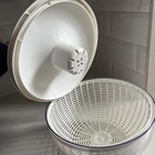 Selling ~ one vintage Salad Spinner in good working condition. - Brand: OXO Good Grips. - Parts include: · Clear outer bowl with non-slip base, measures 10.5” wide / diameter, 7”tall. · White inner basket / colander. · White lid with pump, lock for pump, brake button for stopping the spin. - Condition: gently used, clean, a few scuff marks, works well. See photos. - From a smoke-free environment. Thanks for shopping with us.