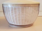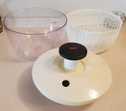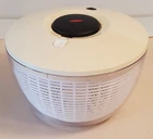 OXO Salad Spinner. White top with clear bowl. Tested works. Used, excellent cond