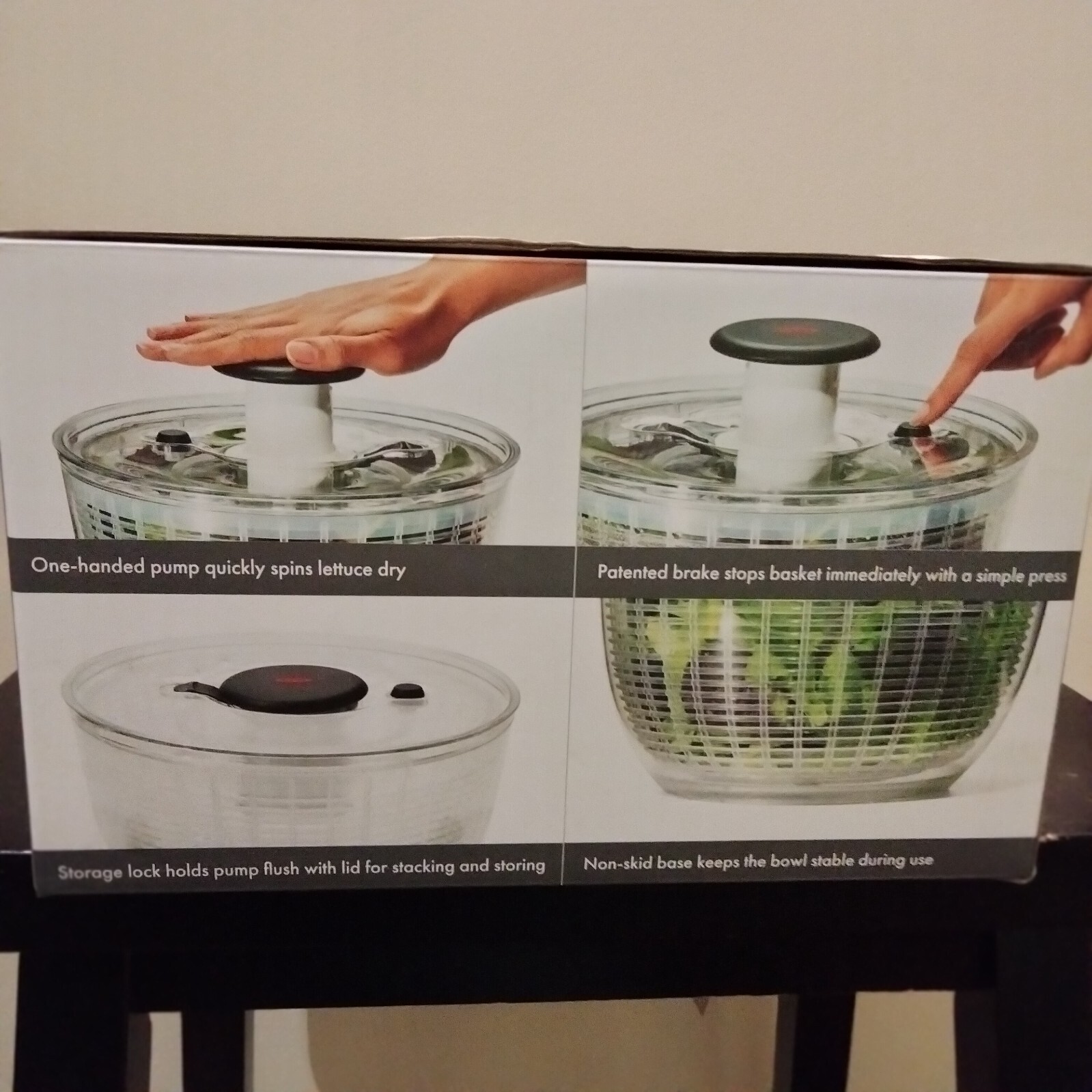 The NOB OXO Softworks Salad Spinner 1045421 is a large, white plastic bowl with a lid and a soft push handle, designed to make it easy to spin off excess water and debris from your salads, fruits, pastas, and vegetables. OXO, a company known for producing high-quality kitchen tools. One-handed pump for maximum drying with minimum effort Patented brake stops basket immediately with a simple press Storage lock holds pump flush with lid for stacking and storing Non-skid base keeps the bowl stable during use Removable spinner basket works as a colander for rinsing greens Durable clear bowl doubles as a storage or serving bowl Easy-to-clean lid comes apart for thorough cleaning