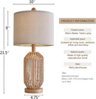 OYEARS 21" Boho Table Lamp for Living Room, Bedside Brown 4 Product Details Finish Type: Antique Base Material: Linen Product Dimensions: 10"D x 10"W x 21.5"H Lamp Type: Nightstand Shade Color: Brown Shade Material: Rattan Switch Type: Touch Style: Bohemian Brand: OYEARS Color: Brown 4 Special Feature: Natural Light Source Type: LED Material: Rattan Room Type: Office, Kitchen, Bathroom, Bedroom, Living Room, Dining Room Recommended Uses For Product: Decoration Power Source: Corded Electric Shape: Round Controller Type: Touch Number of Light Sources: 1 Connectivity Technology: USB Included Components: Shade Age Range (Description): Adult Is Waterproof: False Mounting Type: Tabletop Wattage: 60 watts Number of Items: 2 Lighting Method: LED Control Method: Touch Indoor/Outdoor Usage: Indoor Specific Uses For Product: Decoration Water Resistance Level: Not Water Resistant Installation Type: Tabletop Number of Pieces: 2 Connectivity Protocol: Homeplug Voltage: 1.2E+2 Volts (AC) Is Cordless?: No Manufacturer: OYEARS Shade Height: 8 Inches Item Weight: 3.76 pounds Country of Origin: China Item model number: AMZ-T1137BR-1 Finish types: Antique Special Features: Natural Batteries Included?: No Batteries Required?: No Product Dimensions : 10 x 10 x 21.5 inches; 3.77 Pounds Item model number : AMZ-T1137BR-1 Manufacturer : OYEARS Country of Origin : China Finish Type: Antique Base Material: Linen Product Dimensions: 10"D x 10"W x 21.5"H Lamp Type: Nightstand Shade Color: Brown Vintage farmhouse design: This pair of table lamp for bedroom designs features an antique twine woven body and linen fabric lampshade. The soft, natural brown exterior makes this living room lamp not only look simple and retro, but also create a warm and cozy atmosphere in your room. The farmhouse lamp is very versatile, suitable for a variety of furniture styles. Comfortable Glow: This vintage farmhouse table lamp shade is made of high quality linen fabric, which gives this lamp a soft, non-harsh light and protects the eyes. This bedroom table lamp creates a warm atmosphere for you when you spend time with your family and is perfect for the living room and bedroom. Perfect size: This living room lamp base is 4.75 inches wide, the lampshade is 10 inches wide and 8 inches high, and the overall height is 21.5 inches, this moderately sized and affordable nightstand lamp is the perfect addition to your living room, bedroom, guest room or office. Stable and easy to assemble: The farmhouse table lamp base has a non-slip design to make the lamp more stable. The bedside lamp assembly is very simple and can be completed in a few minutes by following the instructions provided. No Worry Product: The lamp for bedroom comes with 1 years aftersale. We are 100% dedicated to your complete satisfaction with our table lamp for bedroom.