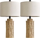 OYEARS 22.5" Boho Table Lamps Set of 2 for Living Room, Bedside Lamp Brown Product Details Base Material: Metal Bulb Base: E26 Product Dimensions: 12"D x 12"W x 22.5"H Lamp Type: Table Lamp Shade Color: beige Shade Material: Linen Switch Type: Rotary Style: A Brand: OYEARS Color: Brown Special Feature: Corded Light Source Type: Energy Efficient Material: Paper Room Type: Bedroom, Living Room, Dining Room, Kids, Home Office Recommended Uses For Product: Decoration, Reading Power Source: Corded Electric Shape: Round Number of Light Sources: 2 Connectivity Technology: AC power cord Included Components: Power Cord, Linen Shade, 1 year aftersale service Is Waterproof: false Bulb Shape Size: T5 1/2 Mounting Type: Tabletop Cartoon Character: Boho Style Number of Items: 2 Lighting Method: LED Control Method: Touch Indoor/Outdoor Usage: Indoor Specific Uses For Product: Decoration, Reading Installation Type: Tabletop Number of Pieces: 2 Efficiency: Energy Efficient Voltage: 1.2E+2 Volts (AC) Is Cordless?: No Manufacturer: OYEARS Shade Height: 11.25 Inches Item Weight: 5.92 pounds Country of Origin: China Item model number: AMZ-T121 Special Features: Corded Batteries Included?: No Batteries Required?: No Product Dimensions : 12 x 12 x 22.5 inches; 5.93 Pounds Item model number : AMZ-T121 Manufacturer : OYEARS Country of Origin : China Base Material: Metal Bulb Base: E26 Product Dimensions: 12"D x 12"W x 22.5"H Lamp Type: Table Lamp Shade Color: beige Modern Natural Interior Design:The bedroom lamps combines light curry metalware, a modern thin paper rope body design, and a natural colored linen shade design to add a charming touch to modern natural interior design style decorations. Boho Style Table Lamp:The lamp base of this boho nightstand lamp is woven by experienced workers to bring bohemian style to your home decor. This living room lamp with fabric shade can be placed in any room and is only 22.5 inches high, perfect for living room, bedroom, office, dormitory and more. Comfortable Glow: This vintage farmhouse table lamp shade is made of high quality linen fabric, which gives this lamp a soft, non-harsh light and protects the eyes. This bedroom table lamp creates a warm atmosphere for you when you spend time with your family and is perfect for the living room and bedroom. Easy to Assemble & Use:Assembling the bedside table lamp is a breeze and can be completed within 3 minutes. On the other hand, the nightstand lamp comes with a power cord that allows you to connect it to a distant outlet. Additionally, the cord switch is conveniently located near the lamp body top, enabling you to effortlessly adjust the lighting within arm's reach during the night. Customer Satisfaction is Our Goal:The small lamp for nightstand comes with 1 years aftersale. We are 100% dedicated to your complete satisfaction with the table lamp.