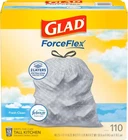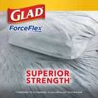 Odorshield 13 Gallon Tall Kitchen Trash Bags with Febreze, 110 Count FORCEFLEX STRENGTH: Experience the reliability of Glad’s innovative ForceFlex technology, engineered to stretch and expand around heavy loads and sharp edges, ensuring maximum durability and strength; packaging may vary GAIN FRESH CLEAN SCENT: Transform your kitchen or household environment with the delightful and refreshing scent of Gain Fresh Clean, complemented by Febreze Freshness for an inviting atmosphere 2 LAYERS EXTRA LEAK PROTECTION: Designed with two robust layers, these kitchen trash bags effectively trap liquids and prevent leaks, making them strong enough to handle even the heaviest loads without worry ODOR PROTECTION: Keep your kitchen smelling fresh with OdorShield technology that traps, locks, and neutralizes unpleasant kitchen odors, providing lasting freshness for your home GRIPS THE CAN DRAWSTRING: Featuring a durable 3-ply drawstring design, these bags grip the trash can securely, ensuring they stay in place while making it easy to close and carry out the trash without fear of leaks or tears Embrace the power of Glad ForceFlex to tackle all the messes that everyday life throws your way. The Glad Tall Kitchen Drawstring Trash Bags are expertly crafted with ForceFlex technology, allowing them to flex and expand around sharp edges and heavy loads, ensuring you can pack them full without the risk of tears, rips, or punctures. Equipped with RipGuard and LeakGuard technology, these trash bags provide extra leak protection, preventing any messy seepage of liquids and keeping your trash securely contained. Banish unpleasant kitchen odors with the potent combination of Febreze freshness and the irresistible Gain Fresh Clean scent, which works tirelessly to trap, lock, and neutralize odors, leaving your kitchen smelling clean and inviting. The Grips The Can Drawstring ensures a snug fit on your trash can, allowing you to confidently transport your trash to the curb without any leaks or tears. Say goodbye to trash bag frustrations and hello to a cleaner, fresher kitchen with Glad! FEBREZE and GAIN are used under license from The Procter & Gamble Company or its affiliates. Thank you for viewing our Odorshield 13 Gallon Tall Kitchen Trash Bags with Febreze, 110 Count.