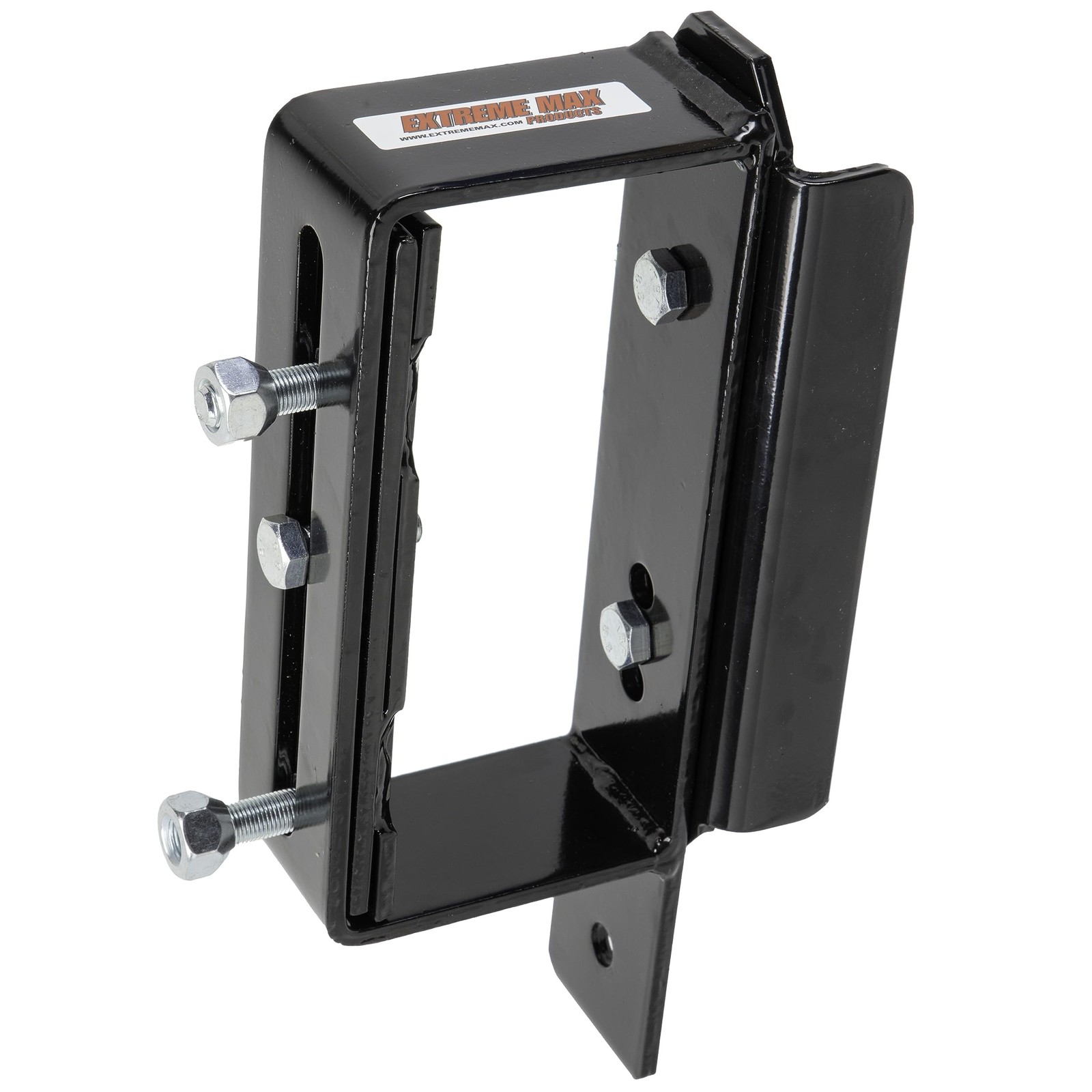 Mount your utility trailer's spare tire at the stake pocket Solid steel construction Compatible with 2.5" to 6.5" wheel lug patterns and 2" x 4" stake pockets up to 4" deep Clamps tight to prevent movement and rattle