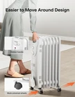 Why choose Oil-filled Heater? Oil-filled radiator provide the most efficient and cost effective electrical heating solution for longer term use. They are ideal for medium to large rooms needing constant temperature. Safety Technology of Oil-filled Heater Over-heating protection - Being applicable to the elderly people and children It possesses the double automatic temperature limiter, which can automatically power off in case of excessive temperature, so both the elderly people and children can use it directly. Safety tip-over switch built in β Safety providing warmth to you every moment If the machine is fallen, it can automatically power off, to prevent the occurrence of dangers. Flame-resistant material β Comprehensively prevent the fire Flame-resistant material is provided for all plastic parts, which can prevent the high temperature from starting a fire, so it is safer without open flame. ππππ π―ππππππ, π³ππππππ πͺππππππ: The 1500W power heats the whole house rapidly and the hot air circulation delivers long-lasting and gentle warmth which avoids dryness in winter, making oil heater your best choice π¬πππππ π¬ππππππππ: Equipped with 3 heating modes 600W/900W/1500W, which can also be used in combination to help save energy bills in winter πΎππππππ-πΈππππ: Lacking of fan construction, oil heater is super quiet, perfect for bedrooms, offices, rooms and other indoor places where not fan of noise πͺππππππππππππ πΊπππππ: Power indicator light lets you know the unit is ON, built-in safety, over-heat protection and tip-over safety switch shuts heater off if accidentally knocked over π·πππππππ π«πππππ: 4 heavy-duty universal casters and the front carrying handle make it easy to satisfy your needs of heating different rooms