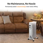 Efficient and Economical Room Heating The Electric Oil-Filled Radiator Heater is a great way to save money on your heating bills. By lowering the overall temperature of your home or office and simply using this heater to keep the room you are currently occupying comfortable, you can cut your energy usage significantly. Silent Operation The electric radiator heater operates silently to minimize disruptions. This makes it quiet enough to leave running even while you're on the phone, studying or trying to drift off to sleep at night. Practical Settings Three convenient heat settings and an adjustable thermostat make it easy to control the unit's output. Simply turn the knobs at the top of the radiator heater to quickly adjust its temperature. Advanced Safety Features A tip-over switch automatically turns the heater off if it is knocked over to help prevent fires, while a built-in sensor helps to prevent the unit from overheating. Compact and Portable Design The Radiator Heater's compact design allows it to fit into a wide variety of medium-sized spaces with ease. It comes equipped with convenient oversized wheels for convenient movement from room to room. WHISPER-QUIET OPERATION: Experience peaceful tranquility with our oil-filled radiator heater, as it operates silently in the background. This makes it an ideal choice for spaces where a quiet atmosphere is crucial, such as offices, dorms, and bedrooms. Enjoy the comforting warmth without any distracting noise, allowing you to focus, relax, or sleep undisturbed. CUSTOMIZABLE HEAT OUTPUT: Tailor the warmth to your exact needs with the versatile heating options of our radiator heater. Equipped with an adjustable thermostat and three heat settings (600W, 900W, 1500W), you have full control over the heat output. Whether you need gentle warmth for a small room or powerful heating for a larger space, this heater can be easily adjusted to match the requirements of your environment. Enjoy personalized comfort and efficient heating at your fingertips. SPACE-SAVING DESIGN: Our radiator heater features a compact and sleek design that effortlessly blends into any medium-sized room. With its slim dimensions of 24.5 inches in height, 8.5 inches in width, and 13 inches in depth, it takes up minimal floor space, making it ideal for rooms with limited area. Its portable nature allows you to easily move and position it wherever you need an extra source of warmth. Enjoy efficient heating without sacrificing valuable space in your home or office. SAFETY AT ITS BEST: Our radiator heater is equipped with intelligent safety features to provide you with peace of mind. It includes a tip-over switch that automatically shuts off the heater if it accidentally topples over, preventing any potential hazards. It is designed with an overheat protection system that ensures the heater automatically turns off if it reaches a high temperature, preventing any risks of overheating. With these smart safety features in place, you can enjoy the warmth of our heater without compromising on safety. EFFORTLESS MOBILITY: Our slimline radiator heater is designed for convenience and easy movement. It features oversized back wheels that glide smoothly, allowing you to effortlessly transport the heater from one room to another. The solid front end provides stability and ensures that the heater remains steady once it is in place. With its user-friendly design, you can easily maneuver the heater to your desired location, ensuring warmth wherever you go.