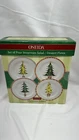 Add some festive flair to your dinner table with this set of four Oneida Christmas Jubilee Stoneware Salad/Dessert Plates. Each plate has a diameter of 8 inches and features a charming Christmas tree pattern in vibrant multicolor. Perfect for your holiday celebration, these plates are made of durable stoneware and can withstand daily use. These contemporary original plates are not only functional but also decorative. They are suitable for any Christmas occasion, and their art pottery production style adds to their uniqueness. Get ready to impress your guests with these ONEIDA plates without worrying about their quality, as they are brand new.