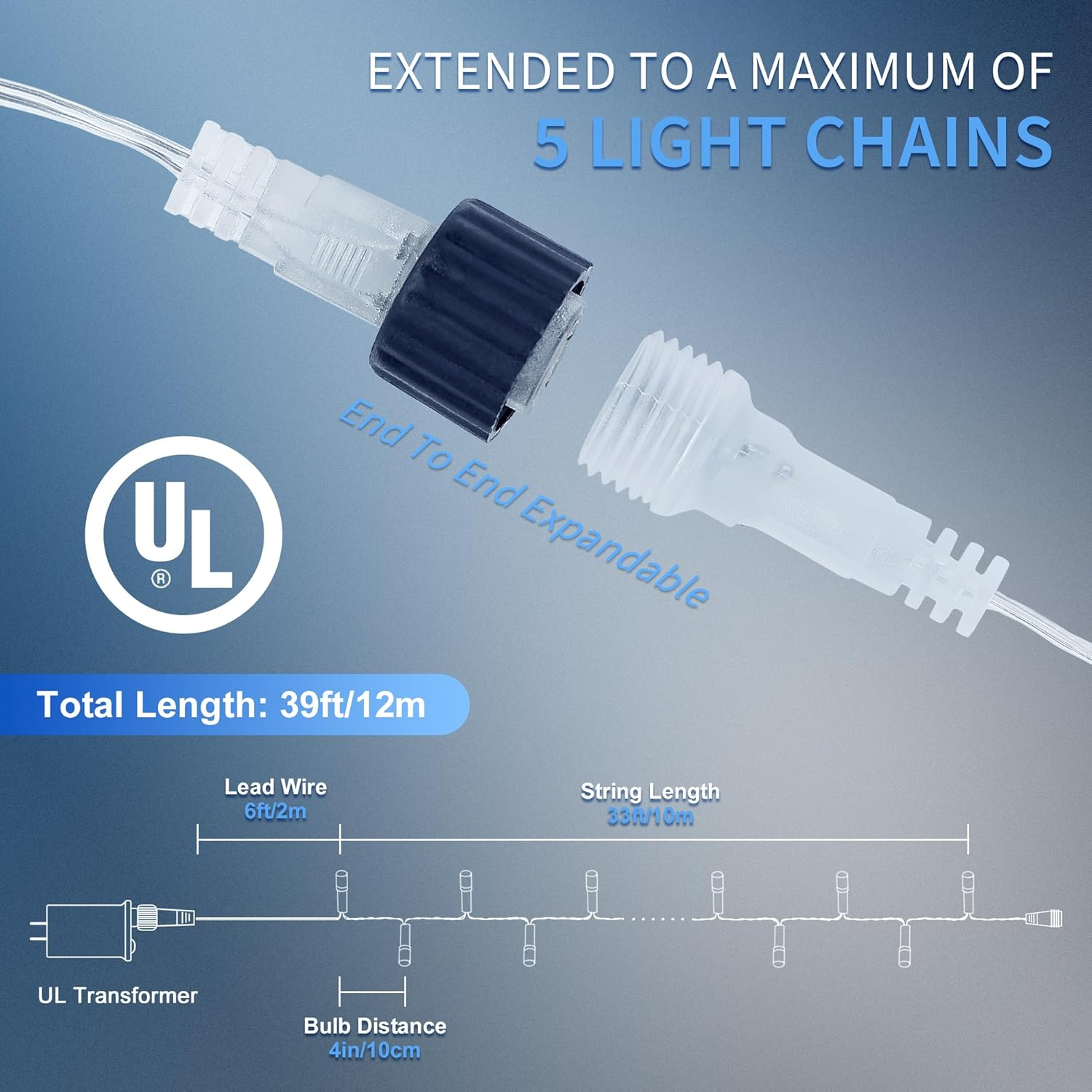 $ 31.921296 LED Christmas String Lights with 288 Drops, 131ft, 8 Lighting Modes for Holiday Decor