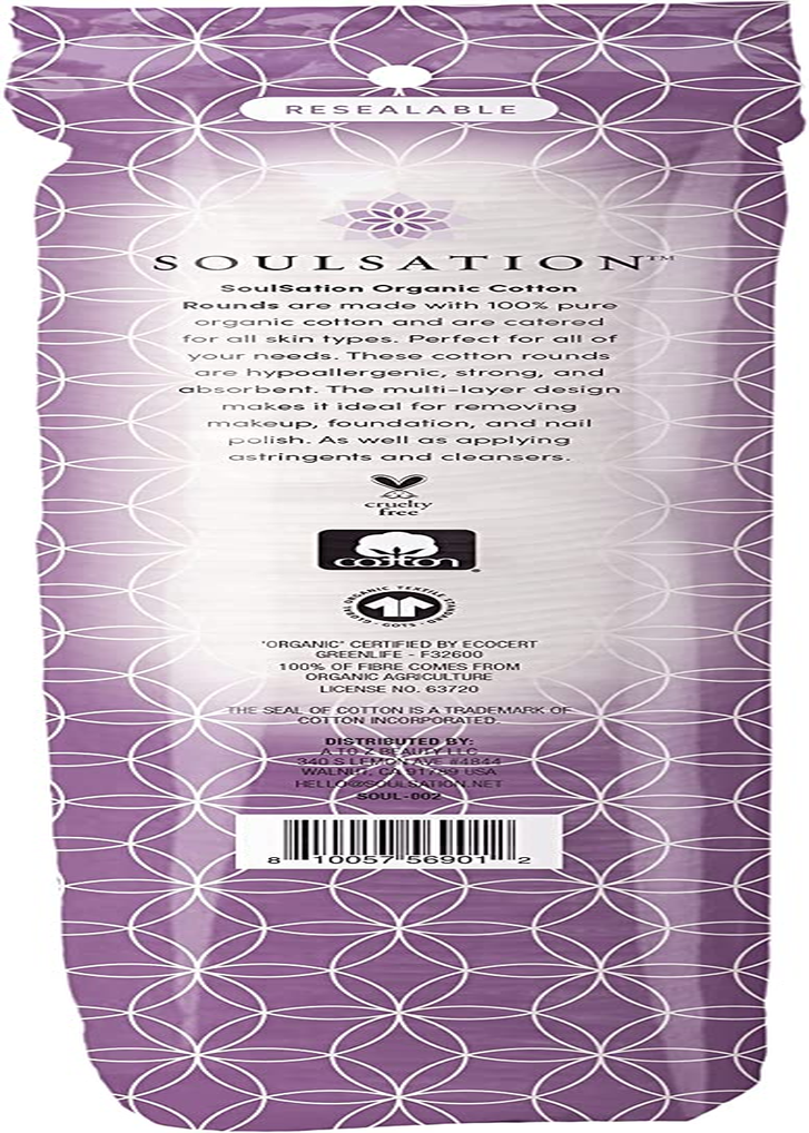 Business is our speciality NEW Organic Cotton Rounds, 400 Count - Makeup Remover Pads for Face, Lint-Free FEATURES Certified Organic Cotton Rounds - 400 Count (4 Packs of 100) Lint Free, Hypoallergenic - No more cotton lint getting in your way 100% Pure & Natural - Sustainable and Eco Friendly Extra Absorbent, Ultra Soft - premium quality, ideal for men and women Cruelty Free & Vegan - Never tested on animals. Product Description Our Premium Cotton Rounds SoulSation Organic Cotton Rounds are made with 100% pure organic cotton and are catered for all skin types. Perfect for all of your needs. These cotton rounds are hypoallergenic, strong, and absorbent. The multi-layer design makes it ideal for removing makeup, foundation, and nail polish. As well as applying astringents and cleansers. Included in this purchase: 400 Organic Cotton Rounds (4 Resealable Bags of 100) 100% Pure Organic Cotton Certified Organic Cotton 100% Pure & Natural Hypoallergenic Lint Free Extra Absorbent Ultra Soft Cruelty-Free and Vegan Made in Turkey Size: 2.15"x2.15" (5.5x5.5cm) SoulSation Commitment If you are not satisfied completely with your purchase, we will be happy to replace it or issue you a full refund. GOTS Certified Cotton Our cotton products are certified organic with Global Organic Textile Standard (GOTS). In other words, it’s really Organic (by ECOCERT 07/2019). Cruelty Free & Vegan Not Tested on Animals. SoulSation meets PETA's requirements to be listed as Cruelty-Free (Certified by PETA 07/2015). Item model number SOUL-002-4PK Material Cotton Country of Origin Turkey Product Benefits Gentle makeup removal and lint-free application, ideal for sensitive skin Shape Round Size 100 Count (Pack of 4) Package Dimensions 10.87 x 8.84 x 2.44 inches; 8.29 ounces 8.84 inches x 10.87 inches x 2.44 inches. Weight: 8.29 oz Ask us anyhting Free shipping PAYMENT We accept all payments via Ebay using Credit Cards , PAYPAL , Apple Pay and many others SHIPPING We are always working hard to ensure your package arrives as soon as possible. Please understand that some factors like weather, high postal traffic, and the performance of shipping companies are outside of our control. DELIVERY & RETURN POLICY We offer a 30-Day Return Policy on items in which you are not completely satisfied with. You have the option of a full-refund or an exchange of the item. No returns are available on items shipped outside of the USA.