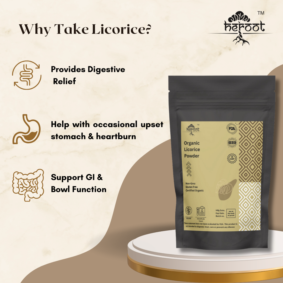 Heroot Organic Licorice Powder Licorice Powder is an ayurvedic medicine that supports in the respiratory and digestive wellness. It is found to be effective against functional dyspepsia, which includes not only heartburn but also a natural remedy for nausea, indigestion and stomach pain. It has anti inflammatory properties and is soothing herb that is used as natural remedy for ulcers and can be a beneficial leaky gut supplement. Key Ingredients: Organic Licorice Powder Key Benefits: Supports in respiratory & digestive wellness Useful as anti-oxidants and immunity booster Anti-inflammatory properties provide relief to a irritated sore throat Useful in Acidity & as Mild Laxative Known helpful for menstrual and fertility related concerns Soothes the pain related to eczema and other dermal related concerns Directions For Use: Consume 2gm with lukewarm water after a meal Or as directed by your healthcare provider How To Consume: Can be mixed with warm milk & honey Can be taken with juices & smoothies Can be taken directly with honey Can be filled in capsule and consumed with water Safety Information: Store in a cool dry place Keep out of reach of children If you are pregnant or lactating or prone to any food allergy or under any medical condition consult your healthcare practitioner before use Disclaimer The above description is for information and knowledge purpose, not a healthcare professional advice. Please consult your doctor and/or pharmacist before you take this vitamin. Pregnant or lactating women, diabetics, hypoglycemics, and people with known medical conditions and/or taking drugs, should consult with a licensed physician and/or pharmacist prior to starting any supplementation program. The above statements have not been evaluated by the Food & Drug Administration. Shipping and Handling Shipping time will be 1 business day after the cleared payment We will ship by Indian Post service Shipment will take 15-30 days. Few more days for your local customs delay and formalities. For Express service additional charges will be applied. For any reason you wish to leave Negative or neutral feedback, Please contact us first and let us mutually resolve it. We care for your satisfaction and will make sure that you are happy with the transaction to post us 5**** ratings in all areas. ***Customs Information*** Heroot will not be liable for packages refused or held by customs for delivery. We request that you contact customs office and ask about import regulations and restrictions before placing your order. It is importsnt for you to become familiar with customs policies for your specific country before ordering. Customs regulations differ by country and not knowing their regulations can result in your order incurring high import duties, the delivery being delayed or even returned. Please check with your customs office to see if your country permits the shipment of the products you are planning to order from us and if any additional licenses or permits are needed. Please note: if your order is returned to us due to banned/ restricted products policy, a wrong address, refusal to pay customs fees, refusal to accept the order or because no one was there to accept the delivery of your order, we will refund your order as follow: you will be refunded the total amount of the order, minus the original shipping charge.