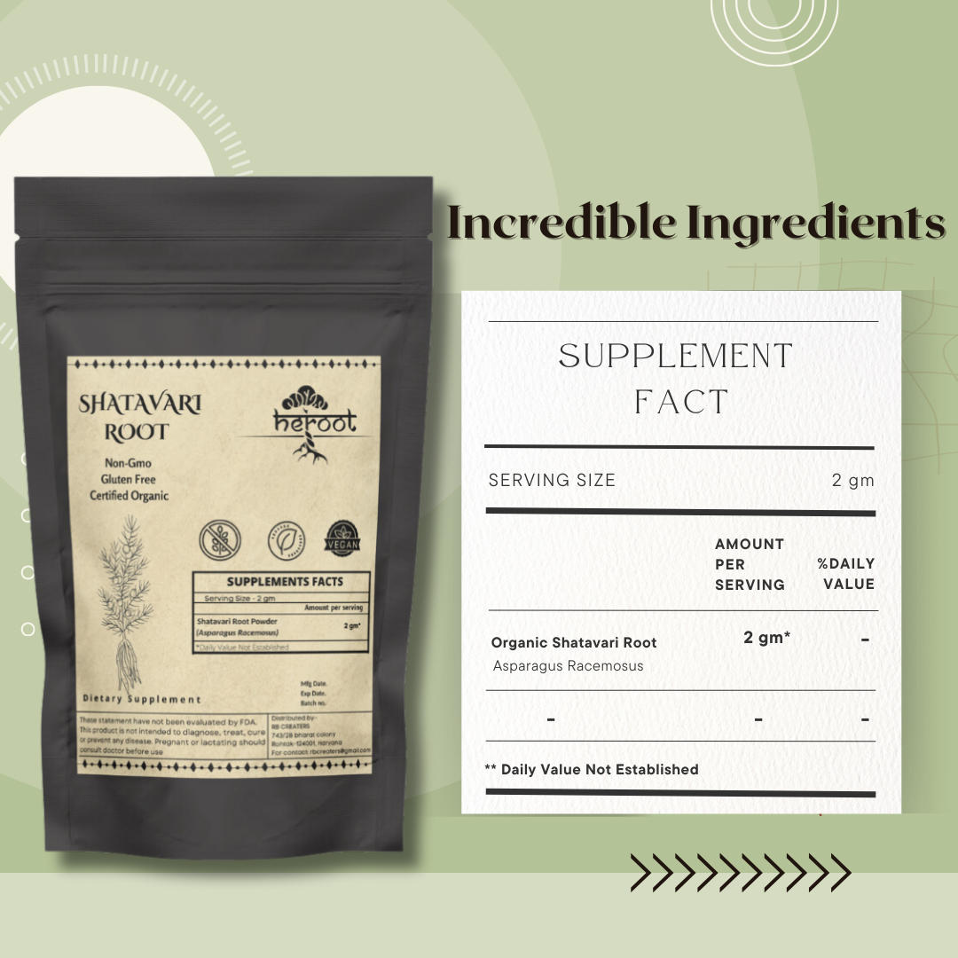 Heroot Organic Shatavari Powder Shatavari is a potent health supplement for women. It is a nourishing ayurvedic formulation which helps improve lactation. It is also useful in managing premenstrual as well as menopausal symptoms. It consists of Shatavari natural extracts that help improve the overall health of women. After the process of pregnancy, a woman needs more strength to be able to with stand the post effects like breast feeding. This helps in enhancing the breast milk, skin color, any other gynecological issues. Useful in general debility, weakness & loss of immunity. Different herbs and other materials of ayurvedic importance are refined to form this churna. Key Ingredients: Organic Shatavari root Key Benefits: · It helps improve breast milk production in lactating mothers · Balances hormones and helps in the management of premenstrual symptoms · Shatavari helps to manage menopausal symptoms like hot flashes, lack of sleep, depression, irritability, and vaginal dryness · Acts as a uterine tonic and helps to regulate the menstrual cycle Directions For Use: Consume 1/4 tsp (3-5 gm) with lukewarm water after a meal Or as directed by your healthcare provider How To Consume: Can be mixed with warm milk & honey Can be taken with juices & smoothies Can be taken directly with honey · Can be filled in capsule and consumed with water Safety Information: · Store in a cool dry place · Keep out of reach of children · If you are pregnant or lactating or prone to any food allergy or under any medical condition consult your healthcare practitioner before use Disclaimer The above description is for information and knowledge purpose, not a healthcare professional advice. Please consult your doctor and/or pharmacist before you take this vitamin. Pregnant or lactating women, diabetics, hypoglycemics, and people with known medical conditions and/or taking drugs, should consult with a licensed physician and/or pharmacist prior to starting any supplementation program. The above statements have not been evaluated by the Food & Drug Administration. Shipping and Handling 1. Shipping time will be 1 business day after the cleared payment 2. We will ship by Indian Post service 3. Shipment will take 15-30 days. Few more days for your local customs delay and formalities. 4. For Express service additional charges will be applied. For any reason you wish to leave Negative or neutral feedback, Please contact us first and let us mutually resolve it. We care for your satisfaction and will make sure that you are happy with the transaction to post us 5**** ratings in all areas. ***Customs Information*** Heroot will not be liable for packages refused or held by customs for delivery. We request that you contact customs office and ask about import regulations and restrictions before placing your order. It is importsnt for you to become familiar with customs policies for your specific country before ordering. Customs regulations differ by country and not knowing their regulations can result in your order incurring high import duties, the delivery being delayed or even returned. Please check with your customs office to see if your country permits the shipment of the products you are planning to order from us and if any additional licenses or permits are needed. Please note: if your order is returned to us due to banned/ restricted products policy, a wrong address, refusal to pay customs fees, refusal to accept the order or because no one was there to accept the delivery of your order, we will refund your order as follow: you will be refunded the total amount of the order, minus the original shipping charge .