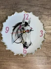 Material: porcelain Style: Art Deco Item Weight: Less Than 1 lb Display Type: Analog Movement: Quartz (Battery Powered) Power Source: Battery Powered Shape: Round Personalize: No Department: Kids, Teens, Adults Color: Multicolor Original/Reproduction: Original Frame Material: Porcelain Item Length: 6 in Features: 12-Hour Display, Battery-Operated, Silent/No Ticking Brand: Hade-made Character: horse Item Width: 1 in Seller Notes: “Excellent Condition” Finish: Glossy Type: Standard Wall Clock Year Manufactured: 2024 Number Type: Arabic Numerals Theme: Animals Item Height: 6 in Room: any Country/Region of Manufacture: United States Engraved: No