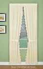 Orleans: tambour scallop edge curtain a classic look reminiscent of the Cape Cod curtain in style but with an updated design. This 50percent cotton 50percent polyester tambour scallop edge curtain will bring grace and elegance to any room. Every piece is beautifully embellished with scalloped edge bottom and/or side. Swags, valances and fan inserts are available to create your own favorite combinations of window toppers. Tiers in 30 inch and 36 inch come with pair of tiebacks. Panel pairs comes with pair of coordinated tiebacks! each piece hangs with a rod pocket and fit a rod up to 1 inch in diameter. Available in colors: white, ecru, sage, Buttercup, brick red and linen. Machine washable, easy care. Panel pair with tiebacks, valances, swag pair, Tier pair and fan insert are sold separately. 65Percent polyester; 35Percent cotton Engineered Tambour Scallop Edges Solid color, poly-cotton blend, Easy care-machine washable Engineered tambour scallop edges in L shaped panel pair, 2 tiebacks included, 4-piece-set