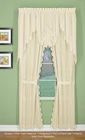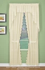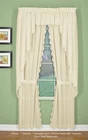Orleans: tambour scallop edge curtain a classic look reminiscent of the Cape Cod curtain in style but with an updated design. This 50percent cotton 50percent polyester tambour scallop edge curtain will bring grace and elegance to any room. Every piece is beautifully embellished with scalloped edge bottom and/or side. Swags, valances and fan inserts are available to create your own favorite combinations of window toppers. Tiers in 30 inch and 36 inch come with pair of tiebacks. Panel pairs comes with pair of coordinated tiebacks! each piece hangs with a rod pocket and fit a rod up to 1 inch in diameter. Available in colors: white, ecru, sage, Buttercup, brick red and linen. Machine washable, easy care. Panel pair with tiebacks, valances, swag pair, Tier pair and fan insert are sold separately. 65Percent polyester; 35Percent cotton Engineered Tambour Scallop Edges Solid color, poly-cotton blend, Easy care-machine washable Engineered tambour scallop edges in L shaped panel pair, 2 tiebacks included, 4-piece-set