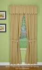 Orleans: tambour scallop edge curtain a classic look reminiscent of the Cape Cod curtain in style but with an updated design. This 50percent cotton 50percent polyester tambour scallop edge curtain will bring grace and elegance to any room. Every piece is beautifully embellished with scalloped edge bottom and/or side. Swags, valances and fan inserts are available to create your own favorite combinations of window toppers. Tiers in 30 inch and 36 inch come with pair of tiebacks. Panel pairs comes with pair of coordinated tiebacks! each piece hangs with a rod pocket and fit a rod up to 1 inch in diameter. Available in colors: white, ecru, sage, Buttercup, brick red and linen. Machine washable, easy care. Panel pair with tiebacks, valances, swag pair, Tier pair and fan insert are sold separately. 65Percent polyester; 35Percent cotton Engineered Tambour Scallop Edges Solid color, poly-cotton blend, Easy care-machine washable Engineered tambour scallop edges in L shaped panel pair, 2 tiebacks included, 4-piece-set