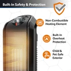 Store New Arrivals Add to Favorite View Feedback Contact Oscillating Ceramic Space Heater for Home with Overheat Protection, Thermostat, and 3 Speeds, 15.7 Inches, Black, 1500W, CT16450, Small, 4 Pounds Description Item model number CT16450 Warranty Description 3-Yr Limited Manufacturer Assembly required No Country of Origin China Style Heater Max Temperature Setting 1500 Watts Fuel Type Electric Room Type Small to Medium Room, Bedroom, Living Room, Home Office, Indoor Batteries required No Product Dimensions 60"D x 72"W x 188.4"H Care instructions Please see user manual Burner type Ceramic Heating Coverage 100 square_feet Item Weight 4 Pounds Heat Output 1500 Watts Form Factor Tower Indoor/Outdoor Usage Indoor Number of Speeds 2 Item Weight 3.97 pounds Special Feature function(f) {var _np=(window.P._namespace("DetailPageProductOverviewTemplatesJava"));if(_np.guardFatal){_np.guardFatal(f)(_np);}else{f(_np);}}(function(P) { P.when('A').execute(function(A){ A.on('a:truncate:po-attribute-truncate-1:updated', function(data) { var isTruncated = !data.truncateInstance.getIfTextFits(); var seeMoreElement = document.getElementById('po-attribute-see-more-id-1'); if(seeMoreElement) { seeMoreElement.style.display = isTruncated ? '' : 'none'; } }) }); })); Portable, Energy Efficient, Overheat Protection,Noiseless,Manual Thermostat,Adjustable Temperature,Cool Touch Exterior, Oscillating, Lightweight See more Amperage 12.5 Amps Mounting Type Floor Mount, Tabletop Mount Color Black Power Source Corded Electric Heating Method Convection Cable Length 6 Feet Voltage 120 Recommended Uses For Product Office, Garage, Desk, Home Included Components Tower Fan, User Manual Number of pieces 1 ✅【HEATS UP A ROOM FAST】Powered by an energy efficient ceramic heating element this portable space heater has 2 quiet heat settings, High (1500W) and Low (900W). The optional widespread oscillation helps evenly disperse warmth to quickly eliminate cold spots in your home, apartment, garage, basement or any room up to 150sq. ft. ✅【KEEPS YOU NICE & WARM】At 15.7H x 6L x 5W inches, this space heater easily fits on a table, desk, counter top or nightstand and is ideal for warming up the bedroom, home office, kitchen or anywhere warmth is wanted to save on whole-house heating costs. The manual thermostat lets you control your desired personal comfort level. ✅【EASY TO USE】Comes fully assembled. Simply take it out of the box and plug the 6 ft. 2-pronge cord directly into a standard 120V wall outlet. Choose from 2 settings: HIGH/LOW. Built-in handle makes it easy to move from garage to basement. ✅【BUILT-IN SAFETY FEATURES】Heater is ETL listed and features Automatic Overheat Protection to take the worry out of using the heater for long periods of time. The self-contained, self-regulating ceramic heating element helps keep the exterior housing cool to the touch, making Lasko a safe choice for chilly days and nights. ✅【TRUSTED FOR GENERATIONS】Lasko is an industry leader in personal home comfort and has been making quality products for over 100 years. Why not get a second heater for the kids college dorm, the den, or living room, and save on your whole-house heating costs? Makes for a great gift. This powerful ceramic space heater from Lasko is ideal for tabletop or floor use. With 1500 watts of comforting warmth, this small heater will make you feel cozier and more comfortable in your home office, living room, bedroom—almost any room in the home. This portable heater features an adjustable thermostat, easy-to-use controls, widespread oscillation, 2 heat settings, and a built-in carry handle. When the weather turns chilly, save on your overall heating costs by warming the room you're in and turning down the whole-house thermostat. This electric heater is equipped with safety features, including overheat protection and cool-touch housing. Comes fully assembled, plus a 3-year limited warranty. ABOUT US We offer the best prices around on high quality products. Our E-store includes media such as books, movies, music and games while offering electronics, toys, sporting apparel, clothing, tools, general home, garden items and more. SHIPPING We are always working hard to ensure your package arrives as soon as possible. Please understand that some factors like weather, high postal traffic, and the performance of shipping companies are outside of our control. We offer free shipping to the lower 48 states and ship within 2 business days of payment, usually sooner. We do not accept P.O. Boxes. Please provide a physical address. For shipping outside of the continental USA, we only use eBay's Global Shipping Program.The item is shipped to KY and then sent to the rest of the world. International customers are responsible for all duties and taxes. Continue to check out in order to calculate costs for shipping the item to your country. Messages regarding eBay's Global Shipping Program MUST be directed at eBay EXCLUSIVELY. RETURNS We offer a 30-Day Return Policy on items which you are not completely satisfied with. You have the option for a full-refund or an exchange of the item. No returns are available on items shipped outside of the USA. PAYMENT We accept PayPal. CONTACT US This page content is yet to come Please ad us to your favorite seller and visit again later Thank You CUSTOMER SATISFACTION We try our very best to make sure every customer is completely satisfied. If there's a problem, message us! We're happy to help. WE ACCEPT
