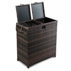 Introductions: Keep your outdoor and indoor spaces clean and stylish with our 72-gallon large wicker trash bins. Designed for durability and functionality, this trash can features a dual-lid design to separate and organize waste, making it perfect for managing trash at parties or daily use. Its UV-resistant PE rattan and sturdy steel frame ensure-lasting performance in all weather conditions. With thoughtful details like adjustable feet, easy-to-replace trash bags, and a modern wicker texture, this trash bin seamlessly combines practicality and elegance for any porch, patio, backyard, or commercial space. Features: 1. Massive 72-Gallon Capacity with Dual Lids: Keep your trash organized with dual compartments, perfect for separating recyclables from waste or managing large amounts of trash effortlessly. Ideal for gatherings, parties, or everyday use. 2. Durable Construction for All-Weather Use: Made from UV-resistant PE rattan and a sturdy steel frame, this trash bin resists fading, rust, and wear, ensuring-lasting use both indoors and outdoors. 3. Convenient Design: A cutout under the lid makes trash bag replacement quick and simple. Each lid is equipped with lift handles for easy access, while adjustable feet ensure stability on uneven surfaces. 4. Elegant and Modern Design: Featuring a textured wicker surface and sleek, polished look, this trash bin seamlessly blends functionality with aesthetic appeal, making it a perfect addition to any outdoor or indoor space. 5. Versatile Indoor and Outdoor Use: Whether it's for your patio, porch, backyard, or even your kitchen, this dual-lid trash bin is a practical solution for keeping your spaces clean and organized while enhancing the décor. Specifications: 1. Dimensions: (30.7 x 16.1 x 33.9) in / (78 x 41 x 86) cm 2. Interior Bin Dimensions: (28.7 x 14.2 x 29.9) in / (73 x 36 x 76) cm 3. Iron Dimensions: (14 x 14 x 0.8) in / (35.5 x 35.5 x 2) cm 4. Lid Dimensions: (13.6 x 14.4 x 0.8) in / (34.5 x 36.5 x 2) cm 5. Hole Dimensions: (3.1 x 2.8) in / (8 x 7) cm 6. Material: PE Rattan, Steel 7. Net Weight: 26.9 lbs / 12.2 kg Package Includes: 1 x Wicker Trash Bin