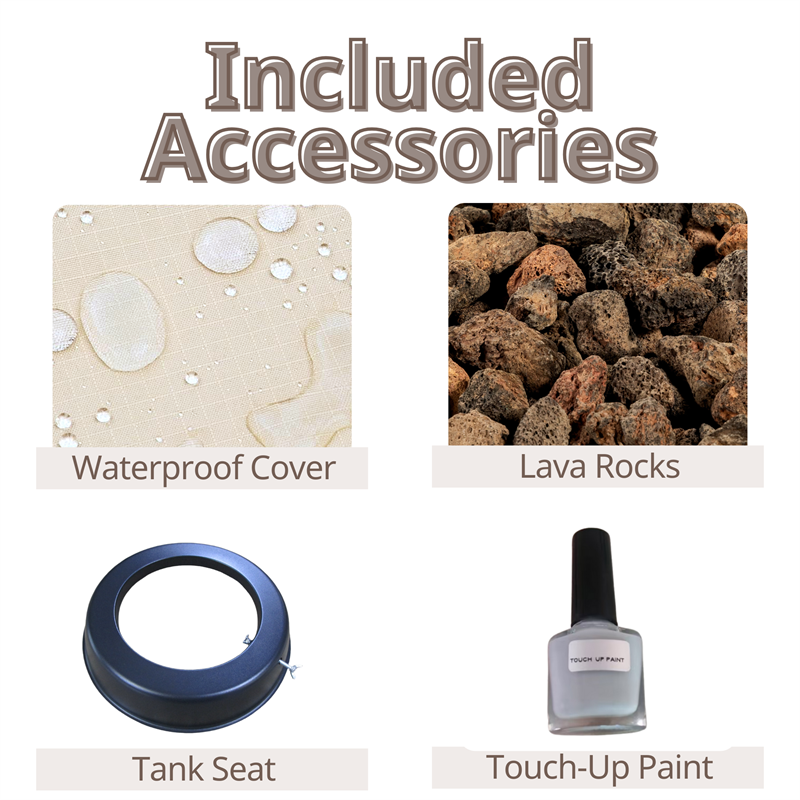 【High-Quality Material】Crafted from premium magnesium oxide composite and glass fiber, this outdoor fire table offers exceptional durability and strength. These materials provide long-lasting performance, a strong bearing capacity, and a lightweight design, making it easier to move and arrange in your outdoor space. 【Product Size and Design】Compact in size yet big on style, this 19.7-inch outdoor fire pit table measures a space-saving 19.7 "Lx 19.7" W x 19.7 "H and weighs 30.7 lbs. Its sleek, minimalist silhouette features clean lines and a smooth, modern finish that seamlessly blends into small patios, balconies, or intimate outdoor nooks. 【Safety and Ease of Use】Safety is a priority, and this fire pit table is SGS certified. The electronic ignition allows for easy lighting at the push of a button, while the adjustable knob lets you customize the flame intensity. Enjoy warm evenings with family and friends as the steel burner delivers 40,000 BTUs of clean-burning propane heat, creating a cozy atmosphere for relaxing and sharing conversations. 【Functionality and Scenario】Ideal for cozy gatherings in limited outdoor spaces, this streamlined fire pit table is perfect for adding warmth, ambiance, and a touch of sophistication to your patio or balcony. Its petite dimensions allow you to tuck it into tight corners or place it near seating areas, creating a focal point that won't overwhelm the surrounding decor. Picture gathered with friends and family, sipping drinks and sharing conversation as the mesmerizing flames flicker, fostering a s 【Included Accessories & Customer Support】This outdoor fire table comes with a pack of decorative lava rocks and a waterproof cover to protect it from harsh weather conditions like rain, wind, and snow, extending its lifespan. Additionally, it includes a bottle of touch-up paint in the same color for minor maintenance, along with a product instruction manual for proper use and care. Our dedicated customer support team is always ready to assist you with any questions or concerns.