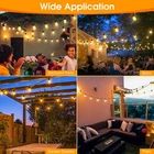 【Dimmable String Lights with Remote】control with remote, 3 lighting modes - breath / lighting / flash mode, adjustable 4 levels of brightness - 25%/50%/75%/100%, meet your different lighting needs for your party in patio. 【IP65 Waterproof】IP65 water proof, not only as hanging lights for indoor, also can as outdoor led lights to withstand humidity, rain, wind, snow, and extreme weather, suitable for your various lighting scenes in your daily life, help you to creat a cozy ambiance. 【Safe Low Voltage String Lights】new advanced low voltage design, more energy saving, same lighting effect as high voltage ones, but no risk of high voltage, safer for family members to use. 【Shatterproof LED Edison Bulbs】plastic led lights bulbs, no worry about broken bulbs, extra-long 15,000 hour lifespan, no need for frequent replacements, save your time & money, provide reliable and long-lasting outdoor lighting. Enclosed lamps, ultra low fever, combined with low-voltage wires, safer to install & detach, protect you and your family. 【Easy to Use & Widely Scenes】with hanging holes on its cord, easy to hang and as decorations for your porch, patio, backyard, garden, gazebo, pergola, tent, balcony, terrace, bedroom, living room, bistro, cafe, market, well fit for birthday, wedding, holiday, house party or other conditions.