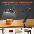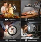 Perfect Overhead Ring Light with Stand: Evershop overhead ring light with stand provides even, natural-looking lighting that enhances your subject's features and makes your content look professional. Say goodbye to harsh shadows and uneven lighting! Thanks to its flexible adjustment design, you can capture the best angle and lighting during use. Use this ring light to improve lighting and capture high-quality footage Best Selfie Ring Light for Photography: Evershop ring light tripod for iphone is reinforced lamp head to get more stable for photos. This ring light has 3 lighting mode: warm light; natural light; cool light, each mode has 10 brightness levels, providing a total of 30 options will meet all your needs. The overhead camera mount with light allows for quick adjustments to any angle in just 1 second, easier to record the whole process of shooting videos, content creation, etc Upgraded Stable Desk Ring Light: The phone stand for recording makes of alloy materials, upgrade metal cantilever bracket, durable and long lasting, flexible adjustment at any angle freely. Metal desktop base to fix the base firmly on the table, save space. Upgrade double springs to support more stable prevent slipping. All make this ring light for desk ideal for video recording; photos; make up; live steaming; video conference Portable and Useful Overhead Phone Mount: This overhead phone mount with ring light easy to install and set up, as well as intuitive to use. It can storage into a small piece on a corner of the table, save space. The length of bracket is 30 inch, meet all the length you need during use. What’s more,it not only a ring light, but also as a celll phone holder. NOTE: USB powered. It is recommended to use a plug(not included) with 10W or more for higher brightness Package Contents: 1 ring light, 1 one way clip, 1 cantilever stand, 1 I clip, 2 wire clips, user manual. NOTE: Before buying, please make sure that the thickness of your desk does not exceed 2.3 inches, so that the clip of the ring light with stand can fit your desk thickness