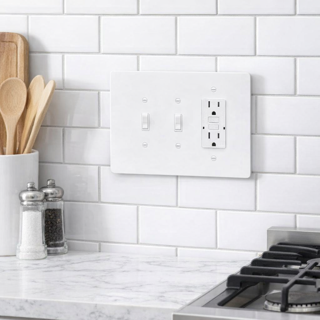 Extra Large Electrical Cover White 6 inch x 8 inch Made of plastic Textured Surface Made in USA Screws are included 🧱 Large Oversized Electric Combo Wall Plate – Perfect for Renovation & Repair Need to cover paint lines, cracks, or oversized wall openings? Our Large 6" x 8" Electric Wall Plates are the perfect solution for clean, professional-looking results during renovations or repairs. Unlike standard wall plates, these oversized outlet and switch covers provide extra coverage —ideal for: Hiding paint lines or color changes left by old switch plates Covering cracked drywall or uneven wall openings Fixing loose electrical box cutouts that are too large Giving your walls a fresh, finished look without extra patching or painting Product Highlights: 📏 Extra-Large Size: 6" x 6" for maximum coverage 🧰 Renovation-Friendly: Instantly hides imperfections 💪 Durable Material: Made from high-quality, impact-resistant plastic 🎨 Clean Modern Look: Available in popular finishes to match any décor ⚡ Easy Installation: Fits standard switches and outlets Whether you’re remodeling a home, updating old wiring, or flipping a house, these oversized wall plates make your project faster, cleaner, and more professional.