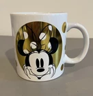 This oversized coffee mug features Minnie Mouse in a playful polka dot design on a white and gold background. Made by Disney's Galerie, this mug is a must-have for any Disneyana collector or Minnie Mouse fan. It is made in China and is an official Disney franchise product. Perfect for morning coffee or as a decorative piece on a shelf, this mug is sure to bring a smile to any Disney lover's face.