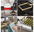 The sponge caddy for kitchen sink organizer and storage tidy up clutter in the RV or kitchen sink sponge, brush, dishcloth,etc. Kitchen sink accessory makes life cleaner and comfort. ❤️[ DRAINAGE & KEEP DRY ]: The SIMCAS sponge caddy for kitchen sink decor upgrades hollow design and let water drain quickly, keeping drying the over the sink shelf to avoid bacteria. The sponge caddy for kitchen sink help for a neat counter. ❤️[ PREMIUM STAINLESS MATERIALS]: The sink caddy and sponge holder made of premium stainless materials is waterproof, rust-proof and durable for loading. The faucet rack for kitchen sink remain bright appearance after prolonged use. ❤️[ LOAD CAPACITY & DURABLE]: The sponge holder for kitchen sink and over the sink shelf organizer have double faucet sink basket shelf and the capacity enough for sponge,towels,Hand sanitizer,detergent,cup,drain plug etc. Also Hooks for peeler and brush.
