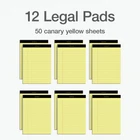 Oxford Legal Pads are made in America—manufactured in Covington, TN. These letter size legal pad 12 packs are great for law school notes, meeting notes, creative notes, long to do lists, and more. Each notepad has 50 perforated sheets of canary yellow paper, so you can always remove it cleanly and start notes on the next page. Yellow paper is less straining to your eyes, making these an optimal choice for power users. These yellow legal pads are wide ruled on both sides. Wide rule is also known as legal rule and provides 11/32" or 0.3" between lines so you can write a little larger. Each legal pad is 8.5 x 11.75 inches overall, and each sheet tears out to letter size (8.5 x 11 inches). Stock up on a 12 pack of 8.5 x 11 legal pads; each yellow legal pad has 50 perforated, wide ruled sheets and is ruled on both sides This legal pad pack is great for longer lists, and school and work notes; with more room to write, you won't miss any important details; yellow legal pads can be less straining on your eyes These notepads are proudly made in the USA; all Oxford legal pads are manufactured in Tennessee The overall dimension of each letter size notepad is 8.5" x 11.75"; each perforated sheet tears off to letter size (8.5" x 11"); pages are wide rule for larger, more legible writing The Oxford brand represents lifelong learning; taking notes on these Oxford legal notepads can help you better retain and recall information from the classroom to your career