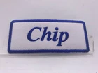 THIS AUCTION IS FOR A NEW EMBROIDERED IRON/SEW ON NAME PATCHES) ( SIZE 1-1/2 INCHES TALL AND 3-1/2 INCHES WIDE) CHIP (BORDER AND NAME EMBROIDERED ) (AVAILABLE IN BLUE ON WHITE RED ON WHITE AND WHITE ON RED (NEW) SHIPPING FOR THIS ITEM WILL BE (FREEEE IN THE U.S.A.) PLEASE PAY THROUGH EBAY. ITEMS WILL BE SHIPPED 1 BUSINESS DAY AFTER RECEIVING PAYMENT. THANK YOU FOR LOOKING! ! CLICK HERE TO Save as Favorite Seller Most items will be shipping in a regular letter envelope and will NOT have a tracking number. All items will be shipped the next day, if you pay before 10:00am pacific time your package will ship same day. If you pay on Saturday you package will ship on Monday unless it is a holiday it will ship on Tuesday. I ship 6 days a week. by 10:00am pacific time. INTERNATIONAL BIDDERS SHIPPING FOR THIS ITEM WILL BE $3.00 FOR THE FIRST PATCH OR SET AND .25 FOR EACH ADDITIONAL PATCH. THANK YOU FOR WATCHING <div style="text-align:center"><a style="text-decoration:none" href="http://mostpopular.sellathon.com/?id=AC583636"><img src="http://www.sellathon.com/Resources/Images/countercredit.gif" border="0"></a></div>