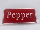 THIS AUCTION IS FOR A NEW EMBROIDERED IRON/SEW ON NAME PATCHES) ( SIZE 1-1/2 INCHES TALL AND 3-1/2 INCHES WIDE) PEPPER (BORDER AND NAME EMBROIDERED ) (AVAILABLE IN BLUE ON WHITE RED ON WHITE AND WHITE ON RED (NEW) SHIPPING FOR THIS ITEM WILL BE (FREEEE IN THE U.S.A.) PLEASE PAY THROUGH EBAY. ITEMS WILL BE SHIPPED 1 BUSINESS DAY AFTER RECEIVING PAYMENT. THANK YOU FOR LOOKING! ! CLICK HERE TO Save as Favorite Seller Most items will be shipping in a regular letter envelope and will NOT have a tracking number. All items will be shipped the next day, if you pay before 10:00am pacific time your package will ship same day. If you pay on Saturday you package will ship on Monday unless it is a holiday it will ship on Tuesday. I ship 6 days a week. by 10:00am pacific time. INTERNATIONAL BIDDERS SHIPPING FOR THIS ITEM WILL BE $3.00 FOR THE FIRST PATCH OR SET AND .25 FOR EACH ADDITIONAL PATCH. THANK YOU FOR WATCHING <div style="text-align:center"><a style="text-decoration:none" href="http://mostpopular.sellathon.com/?id=AC583636"><img src="http://www.sellathon.com/Resources/Images/countercredit.gif" border="0"></a></div>