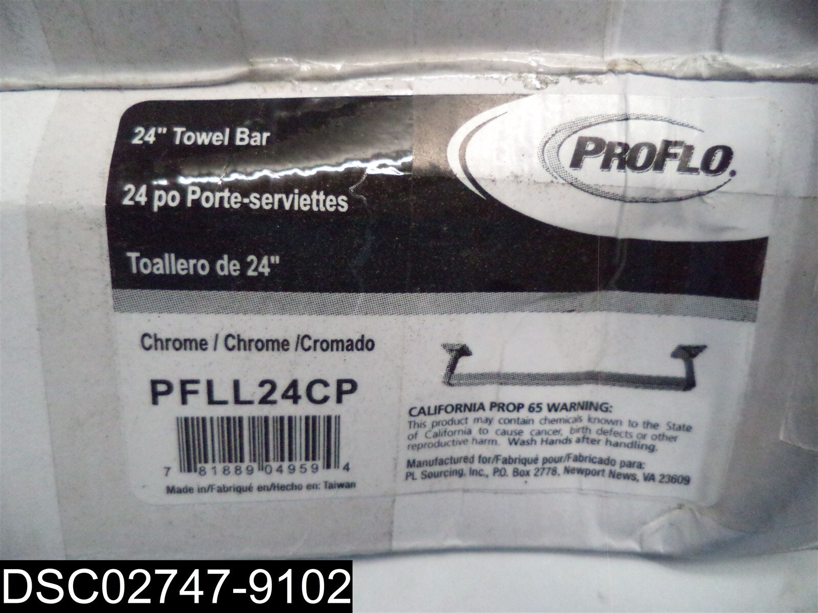 This item is:___PFLL24CP Proflo 24" Towel Bar Set Concealed Screws Chrome ________________________________________________________________ This item is new, however, The original packaging may be missing or imperfect. See photos. Includes only what is shown in the picture. 1005 Warehouse Location:___Warehouse #1_Shelf___________4216_______________________ Sales tax will be added to items shipping to locations in Kansas. _____________________________________________________________________ _____________________________________________________________________ _____________________________________________________________________ By bidding and or purchasing this item(s) you (the buyer) agree to the following terms and conditions: 1. An item is defined as the following: The unit or units purchased in the ebay listing, (it could be a single unit, multiple units, a mixture of units, a variety of units, the incorrect unit or any combination of units not mentioned). It also includes the packaging, or lack thereof, the shipping label, and any contents place in the package by error. 2. The Seller is defined as Seller and/or Consignor. 3. The buyer is defined as the entity that purchased the item from Seller and/or Consignor. 4. If the buyer does not agree to these terms and conditions then do not purchase from us. 5. All items are sold AS IS No warranty or liability is expressed or implied. 6. The buyer agrees that: All items are shipped without insurance. It is the responsibility of the buyer to let us know if they want insurance on the item. Insurance cost is $2.00 for every $50 insured, in $50 increments. The buyer agrees that if no insurance is purchased and the item is not received or received damaged that no claim shall be brought against the seller. 7. We only ship to PayPal confirmed street addresses, no exceptions. No PO Boxes, APO, FPO or similar addresses. 8. The buyer agrees that the sale is considered complete once the carrier has picked up the item from the seller. 9. The buyer agrees that if there is a dispute that arises that the dispute will be settled in the State of Kansas under the laws of Kansas. 10. The buyer agrees that the item fits the buyers purpose prior to bidding. 11. The buyer agrees to indemnify and hold harmless the seller from any and all claims arising out of any conditions or defects for the item or items that they purchased 12. We only ship to the continental United States. The shipping price quoted is for the continental United States Only. All other locations will be charged extra. Out of county buyers agree to pay any additional charges that we ask them to pay including but not limited to import duties, shipping costs, packaging costs, time costs, and other costs. If the item is shipped via ebay global shipping program these terms and conditions still apply. 13. Claims made against the carrier for non-delivery, lost in transit or any other reason shall be made solely by the buyer without aid from the Seller. 14. In the event that any clauses or phrases contained here within are ruled out by a judge, the law, a lawyer, jurors, and or any other entity all others remain in effect. 15. If any claim is brought against the Seller the buyer agrees to pay for any and all costs including legal fees, travel, time, accommodations, and other costs. Late payment will result in the seller charging interest at the maximum legal rate. 16. In any event or circumstance the maximum liability to the Seller is the purchase price plus cost of shipping plus sales tax if applicable. This amount is not subject to inflation, interest, inconvenience fee or any other price adjustment. 17. The buyer agrees there will be no refunds for any reason outside of the Ebay return policy. 18. The buyer understands that our items are wholesale, overstock, unclaimed, foreclosure purchase or salvage goods. Most boxes have been opened for inspection and photos. If items are listed as new they may not come with original packaging. 19. The buyer agrees that they are trained, licensed, qualified, and understand how to properly use, dispose of and handle the product in accordance with law and regulations. 20. The buyer agrees that if any part of these terms and conditions is determined to be void that it does not void or alleviate the enforcement of the remainder of this contract. 21. Seller and/or Consignor is not an authorized distributor, reseller or representative of the products featured on this website. All product names, trademarks, brands and logos used on this site are the property of their respective owners. The depiction, description or sale of products featuring these names, trademarks, brands and logos is for identification purposes only and is not intended to indicate any affiliation with or authorization by any rights holder.