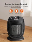 Fast Heating: Relying on PTC ceramic heating tech, high-speed fan element and rated power up to 1500W, heat up 200ft² in 3 seconds. Adjustable thermostat equipped for optimal heating temperature and energy saving. 2-in-1 Heater Fan:1500W/750W heat settings and Fan function provided, it can be used in both summer and winter. Not only a practical appliance for families, but also a great gift. Compact & Quiet: 6" x 7" x 9" compact size even fits perfectly on/under the desk. With noise<50dB, suitable for anywhere you want localized heating. User Friendly: Equipped with Top Control Panel & 2 Rotate Knob to control your indoor temperature easily. Built-in carry handle and lightweight (2.72lbs) can be easily moved to every room. Multi Safety Protections: Overheating protection and tip-over switch ensures safe use. Made of cool touch ABS UL94 V0 flame resistant material. US standard socket can directly plug into an outlet without any adapter or extension cord. Customer First: PELONIS offers the 1-year manufacturer warranty with your purchase, satisfying every customer has always been our relentless pursuit. Pelonis space heater.