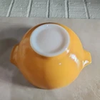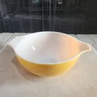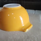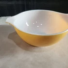 This vintage PYREX mixing bowl in orange is a must-have for any collector. With a capacity of 1 1/2 quarts, it is perfect for mixing ingredients or serving a salad. The bowl features a pour spout, handles, and nesting for easy storage. The solid pattern and orange color make it a standout in any kitchen. Made in the United States, this PYREX bowl is durable and long-lasting. It is part of the Town & Country collection and has a model number of 442. The bowl is perfect for those who enjoy bowling and want to add a unique piece to their collection. Get your hands on this rare item today! Condition is shown in images above!