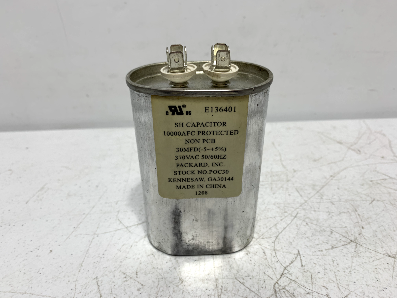 This is a NEW - unused Packard POC30 Motor Run Capacitor 30 MFD 370 VAC -40C to 70C Oval Buyers and Re-sellers, don't miss this opportunity to purchase quality surplus equipment at a great price! There are many more surplus parts on our store, check it out! Return Policy: Returns are accepted within 60 days of the delivery date. Rest assured we will cover all return shipping costs! All returns must be in "as shipped" original condition to qualify for a refund. Photos of packing and product is required for damaged items. Customer returns that satisfy all of the above requirements will be issued a refund including any applicable sales tax Brand new, Packard Run Capacitor, Oval, 30 Mfd., 370 Volt, POC30, 30-370. Packard offers the widest range of capacitors in the industry! Individually boxed Metal cases Metallized film Oil filled Non PCB oil Insulated terminals Hertz: 50/60 Replaces Part Numbers: Fits Models: