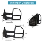 Product Description Detailed description of the product Specifications : Condition New Number Of Pieces 2 Fold Away Manual Fold Warranty 1 Year Color Black Location Passenger Right + Driver Left Side Features: LED Turn Signal Light Power Adjustment Mirrors Glass Heating Element to Defrost Mirrors Black Housing Manual Extendable Arms Auxiliary Lights Ambient Air Temperature Sensor Fits: 2017 2018 2019 2020 Ford F-250 F-350 F-450 F-550 Super Duty Towing Mirrors Pickup Truck Note : These mirrors will only work properly on vehicles with these exact options. If your vehicle does not have the options listed, these mirrors may not function properly. No installation guide. Professional installation is highly recommended. In the event the item should fail due to manufacturing defects during intended use, we will replace the part by free.(1 Year Warranty) If you encounter any problems, please contact us and we will provide you with solutions. Thank you! Payment Shipping Returns Contact Us PayPal is our preferred method of payment for all of our eBay sales. For customer service please contact us via eBay MessagesImmediate payment via PayPal is required for all Buy It Now items. If you need special arrangements, please contact us through eBay messages. Generally, all goods will be shipped within 24 hours after the payment on the working day (except for goods sent from China). If you want to cancel the order or change the address, please contact us within 6 hours after payment, otherwise we will not be responsible. It takes 3-5 working days for logistics and transportation to be delivered. If you are not satisfied with your purchase, you may return it, for a refund or replacement - subject to the following: Contact us through eBay messages or the returns link to receive a Returned Merchandise Authorization (RMA) number to ensure proper handling of the return and/or replacement. In order to be eligible for a full refund, less shipping expenses, your returned merchandise must be in its original new condition, as shipped, with all packaging, manuals, and paperwork intact and unaltered. Items which have been opened are returnable, however they will carry a restocking fee. If that product is returned for a refund, the shipping expenses incurred, will be deducted from the refund. If an item is refused, the carrier bills us for shipping both ways, and these expenses incurred on your behalf need to be deducted from your refund If you have a question about a part you should contact us before buying.And If you have any questions after purchase, please contact us and we will provide a satisfactory solution. Payment PayPal is our preferred method of payment for all of our eBay sales. For customer service please contact us via eBay MessagesImmediate payment via PayPal is required for all Buy It Now items. If you need special arrangements, please contact us through eBay messages. Shipping Generally, all goods will be shipped within 24 hours after the payment on the working day (except for goods sent from China). If you want to cancel the order or change the address, please contact us within 6 hours after payment, otherwise we will not be responsible. It takes 3-5 working days for logistics and transportation to be delivered. Returns If you are not satisfied with your purchase, you may return it, for a refund or replacement - subject to the following: Contact us through eBay messages or the returns link to receive a Returned Merchandise Authorization (RMA) number to ensure proper handling of the return and/or replacement. In order to be eligible for a full refund, less shipping expenses, your returned merchandise must be in its original new condition, as shipped, with all packaging, manuals, and paperwork intact and unaltered. Items which have been opened are returnable, however they will carry a restocking fee. If that product is returned for a refund, the shipping expenses incurred, will be deducted from the refund. If an item is refused, the carrier bills us for shipping both ways, and these expenses incurred on your behalf need to be deducted from your refund Contact Us If you have a question about a part you should contact us before buying.And If you have any questions after purchase, please contact us and we will provide a satisfactory solution. Related Products Chrome Tow Mirrors Power Turn Signal For 2017-20 Ford F350 F450 Super Duty LH+RH LH Side Towing Mirror Power Turn Signal For 2017-20 Ford F250 F350 F450 F550 SD Power Temp Sensor Tow Mirror For 2017-2020 Ford F250-550 SD Passenger Right Side Power Turn Signal Tow Mirrors Fits 2015 Ford F250 F350 F450 SD LH+RH Side Black Tow Mirrors Power Turn Signal For 2001-2016 Ford F-250 F-350 F-450 SD Left+Right Heated √ √ √ √ √ Power √ √ √ √ √ Turn Signal Light √ √ √ √ √ temperature sensor √ NO √ NO NO Clearance Light √ √ √ √ √ Puddle Light NO NO NO √ √ housing color Chrome Black Black Black Black folding Manual Manual Manual Manual Manual fit for 17-20 Ford F-250 F-350 F-450 F-550 17-20 Ford F-250 F-350 F-450 F-550 17-20 Ford F-250 F-350 F-450 F-550 08-16 Ford F-250 F-350 F-450 F-550 99-16 Ford F-250 F-350 F-450 F-550 [22 Pin Plug On Nov 28, 2024 at 10:47:39 PST, seller added the following information: