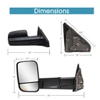 Product Description Detailed description of the product Specifications : Condition New Number Of Pieces 2 Fold Away Manual Fold Warranty 1 Year Color Black Location Passenger Right + Driver Left Side Features: Power Adjustment Mirrors Heating Element to Defrost Mirrors Arrow Light Manual extended telescoping wide angle mirrors Fits: 2002 2003 2004 2005 2006 2007 2008 Dodge Ram 1500 Towing Mirrors 2003 2004 2005 2006 2007 2008 2009 Dodge Ram 2500 3500 Towing Mirrors Note : These mirrors will only work properly on vehicles with these exact options. If your vehicle does not have the options listed, these mirrors may not function properly. No installation guide. Professional installation is highly recommended. In the event the item should fail due to manufacturing defects during intended use, we will replace the part by free.(1 Year Warranty) If you encounter any problems, please contact us and we will provide you with solutions. Thank you! Payment Shipping Returns Contact Us PayPal is our preferred method of payment for all of our eBay sales. For customer service please contact us via eBay MessagesImmediate payment via PayPal is required for all Buy It Now items. If you need special arrangements, please contact us through eBay messages. Generally, all goods will be shipped within 24 hours after the payment on the working day (except for goods sent from China). If you want to cancel the order or change the address, please contact us within 6 hours after payment, otherwise we will not be responsible. It takes 3-5 working days for logistics and transportation to be delivered. If you are not satisfied with your purchase, you may return it, for a refund or replacement - subject to the following: Contact us through eBay messages or the returns link to receive a Returned Merchandise Authorization (RMA) number to ensure proper handling of the return and/or replacement. In order to be eligible for a full refund, less shipping expenses, your returned merchandise must be in its original new condition, as shipped, with all packaging, manuals, and paperwork intact and unaltered. Items which have been opened are returnable, however they will carry a restocking fee. If that product is returned for a refund, the shipping expenses incurred, will be deducted from the refund. If an item is refused, the carrier bills us for shipping both ways, and these expenses incurred on your behalf need to be deducted from your refund If you have a question about a part you should contact us before buying.And If you have any questions after purchase, please contact us and we will provide a satisfactory solution. Payment PayPal is our preferred method of payment for all of our eBay sales. For customer service please contact us via eBay MessagesImmediate payment via PayPal is required for all Buy It Now items. If you need special arrangements, please contact us through eBay messages. Shipping Generally, all goods will be shipped within 24 hours after the payment on the working day (except for goods sent from China). If you want to cancel the order or change the address, please contact us within 6 hours after payment, otherwise we will not be responsible. It takes 3-5 working days for logistics and transportation to be delivered. Returns If you are not satisfied with your purchase, you may return it, for a refund or replacement - subject to the following: Contact us through eBay messages or the returns link to receive a Returned Merchandise Authorization (RMA) number to ensure proper handling of the return and/or replacement. In order to be eligible for a full refund, less shipping expenses, your returned merchandise must be in its original new condition, as shipped, with all packaging, manuals, and paperwork intact and unaltered. Items which have been opened are returnable, however they will carry a restocking fee. If that product is returned for a refund, the shipping expenses incurred, will be deducted from the refund. If an item is refused, the carrier bills us for shipping both ways, and these expenses incurred on your behalf need to be deducted from your refund Contact Us If you have a question about a part you should contact us before buying.And If you have any questions after purchase, please contact us and we will provide a satisfactory solution. Related Products Pair Towing Mirrors Power Heated Turn Signal For 2009-2018 Dodge Ram 1500 2500 Pair Towing Mirrors Power Heated For 2009-2018 Dodge Ram 1500 2500 3500 Black Pair Towing Mirrors Manual Folding Fits 2003-2007 Ram 1500 2003-08 Ram 2500 3500 Piar Towing Mirrors Manual For 2006 Ram 1500/2500/3500 Left+Right Side Chrome Pair Towing Mirrors Power Signal Light For 2003-2009 Dodge Ram 2500/3500 Black Heated √ √ NO √ √ Power √ √ NO √ √ Turn Signal Light √ NO NO √ NO temperature sensor √ √ NO NO NO Puddle Light √ √ NO √ √ Arrow Signal Light NO √ NO NO √ housing color Black Black Black Chrome Black folding Manual Manual Manual Manual Manual fit for 09-18 Ram 1500 2500 3500 4500 5500 09-18 Ram 1500 2500 3500 4500 5500 02-08 Ram 1500 03-09 Ram 2500 3500 02-08 Ram 1500 03-09 Ram 2500 3500 02-08 Ram 1500 03-09 Ram 2500 3500 [22 Pin Plug] On Nov 12, 2024 at 00:06:30 PST, seller added the following information: On Dec 11, 2024 at 14:12:22 PST, seller added the following information:
