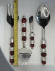 Elevate your holiday table settings with the Pampered Chef Beaded Stainless Steel Serving Utensils Set. This charming set of four includes spoon, and fork, pie server and cheese knife each adorned with red and silver beads that exude a festive and elegant charm. Crafted from durable stainless steel, these serving pieces are perfect for your Christmas celebrations and will complement any holiday-themed decor with their vibrant color scheme. Designed to both delight and function, these utensils are a great addition to your serving collection. The spoon and fork are perfect for serving up your favorite holiday dishes, while the cheese spreader is great for appetizers . Whether you're hosting a formal dinner or enjoying a casual meal with family, this set brings a touch of holiday cheer to every table setting.