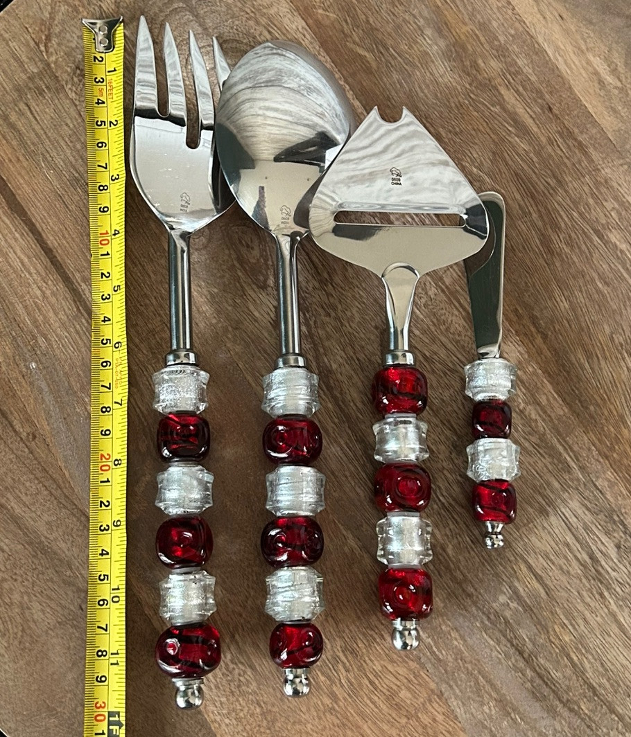 These festive serving utensils are a must-have for holiday gatherings! The elegant red and silver beads add a cheerful touch, while the sturdy stainless steel construction ensures durability. Perfect for serving pies, cheeses, or any holiday dish, they blend style and function beautifully. A lovely upgrade to any Christmas table setting!