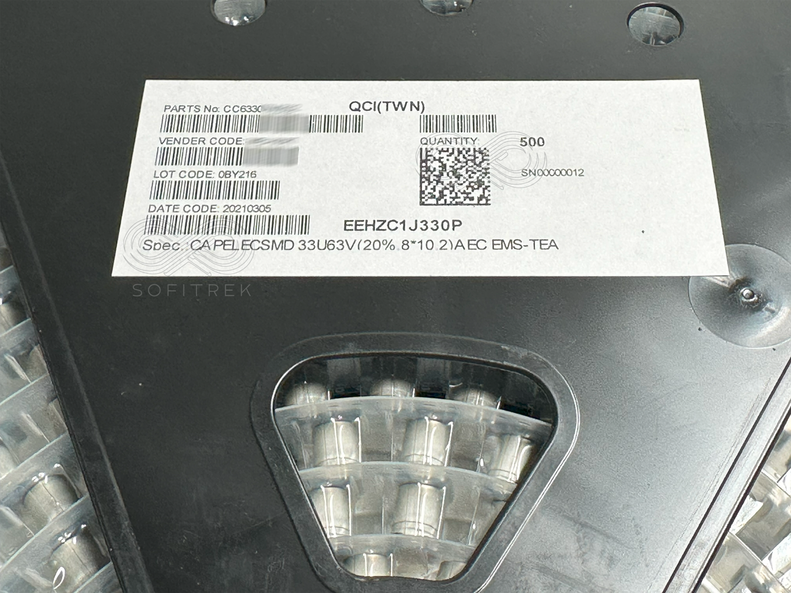 Store Seller Profile Feedbacks Contact Capacitors Aluminum Electrolytic Capacitors Aluminum Electrolytic Capactiors - SMD-SMT close EEHZC1J330P Panasonic 33uF 63V 8x10.2 Aluminum Organic Polymer Capacitor SMD 4000h 125C Ready to Ship Ask a Question 30-Day Return Description Specifications Shipping & Return Policy Disclaimer New Reel of 500PCS - EEHZC1J330P Panasonic 33uF 63V 8x10.2 Aluminum Organic Polymer Capacitor SMD 4000h 125C Specification Capacitance 33 µF Rated (DC) Voltage (URdc) 63 V Ripple Current 110 mA Positive Tolerance 20 % Size Code 3333 ESR 40 mΩ Polarity POLARIZED Negative Tolerance 20 % Mounting Feature SURFACE MOUNT Dielectric Material ALUMINUM (SOLID POLYMER) Capacitor Type ALUMINUM ELECTROLYTIC CAPACITOR Additional Feature ESR IS MEASURED AT 100 KHZ Leakage Current 20.79 µA Tan Delta 0.08 Reference Standard AEC-Q200 Operating Temperature-Max 125 °C Operating Temperature-Min -55 °C Number of Terminals 2 Package Shape CYLINDRICAL PACKAGE Package Style SMT Packing Method TR, EMBOSSED, 15 INCH Surface Mount YES Terminal Shape FLAT Height 10.2 mm Length 8.3 mm Width 8.3 mm Manufacturer Entity PANASONIC CORP Package Description CHIP Manufacturer Panasonic Shipping Policy Our go-to options for small to medium items are USPS Ground Advantage and USPS Priority Mail, known for their reliable tracking and peace of mind. Smaller items might qualify for USPS First Class Mail. Contact us to discuss this option before purchasing. Note: This method is less recommended due to the potential for delays. Return Policy We offer a 30-day return policy, no questions asked. If you choose to provide a reason for the return, it will assist us in improving and fix the issue. Packaging Our items are packaged according to their needs—some in ESD bags with pins secured in protective sponge, others in foam-enclosed boxes. For larger quantities, options include broken tubes for transistors or cartons. We welcome your suggestions for packaging preferences. Sofitrek Product Disclaimer Nature of Goods: All products offered by Sofitrek are surplus items. These products may originate from older batches, series, or have earlier date codes compared to those currently provided by the original manufacturers or their authorized dealers. Non-Affiliation: Sofitrek operates independently and is not an authorized distributor, nor is it affiliated or associated with the manufacturers of the products sold. Consequently, Sofitrek does not represent the manufacturers of these products in any capacity. Exclusion of Manufacturer's Warranty: Since Sofitrek is not an authorized distributor, the original manufacturer's warranties are explicitly not applicable to the products sold. This includes any implied warranties of merchantability or fitness for a particular purpose. Firmware and Software: Some products may include pre-installed firmware or software. However, Sofitrek does not guarantee the presence, compatibility, or the revision level of such firmware or software as suitable for your specific application. Furthermore, Sofitrek expressly disclaims any representation regarding your right or ability to download, obtain, or install any firmware or software for the products from any source, including the original manufacturers or their distributors. Limitation of Liability: Sofitrek shall not be held liable for any form of damages—direct, indirect, incidental, consequential, or otherwise—arising from the use, misuse, or inability to use any product sold. This includes, but is not limited to, damages for loss of profits, goodwill, use, data, or other intangible losses. The buyer assumes all responsibility for the safe and lawful use of the product and agrees to indemnify and hold harmless Sofitrek against any claims, liabilities, or expenses related to the product's use. Compliance and Responsibility: The buyer is solely responsible for adhering to all terms of any End-User License Agreement or similar documentation related to the products, particularly concerning the obtaining, installation, and use of firmware or software. Severability: If any provision of this disclaimer is found to be invalid or unenforceable, the remaining provisions shall continue to be in full force and effect. By purchasing from Sofitrek, the buyer acknowledges having read, understood, and agreed to this disclaimer in its entirety. Links eBay Shop Feedbacks Contact Us © Sofitrek