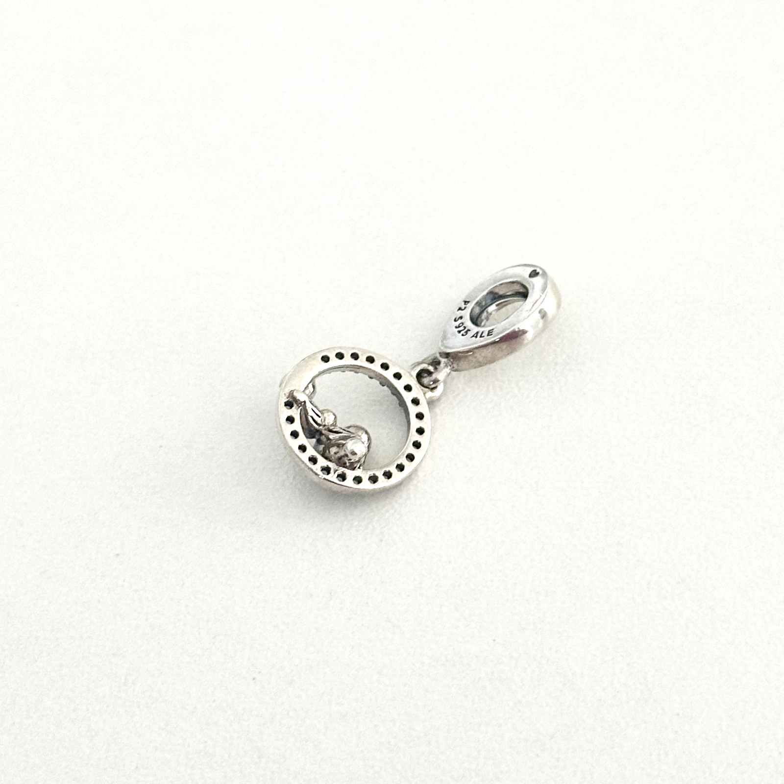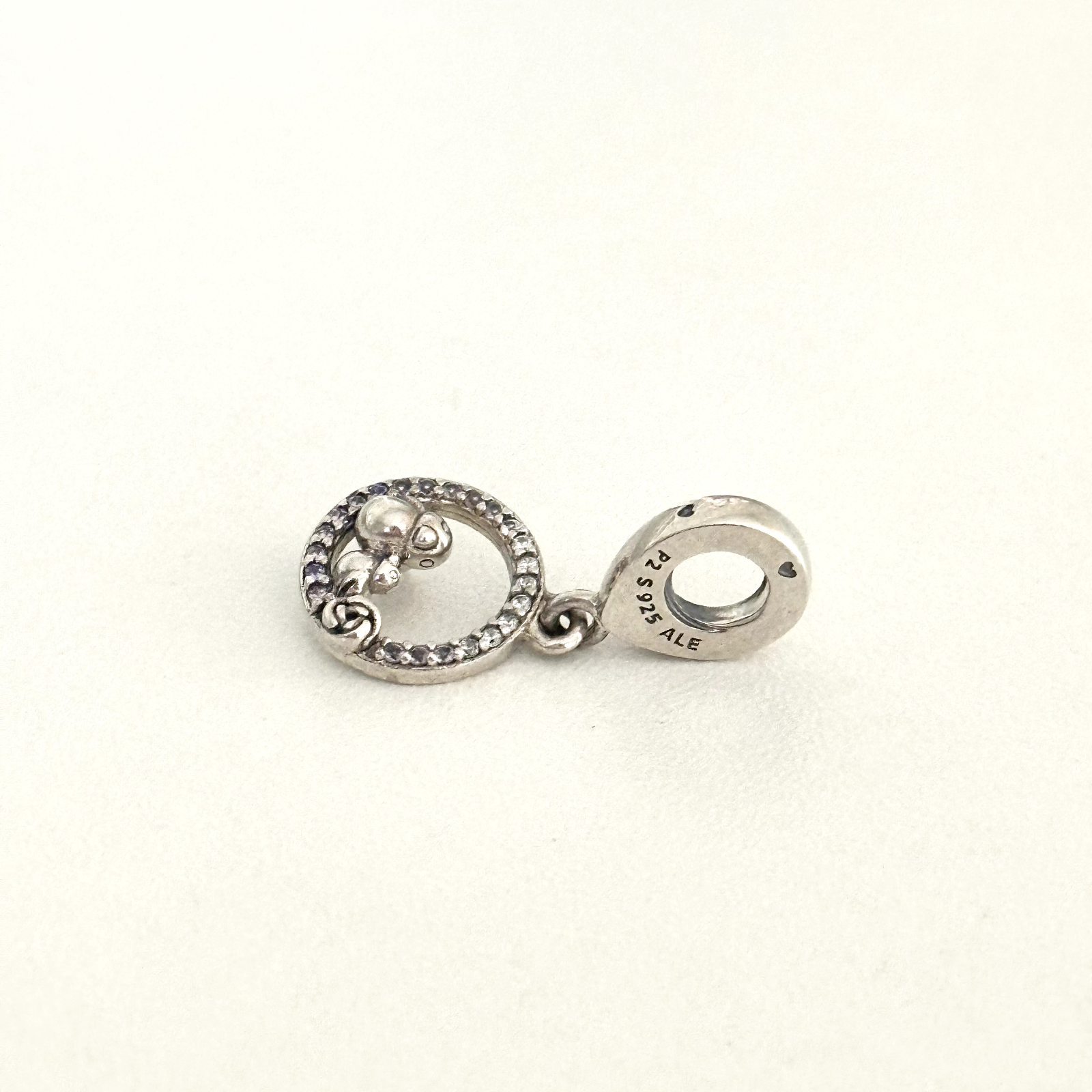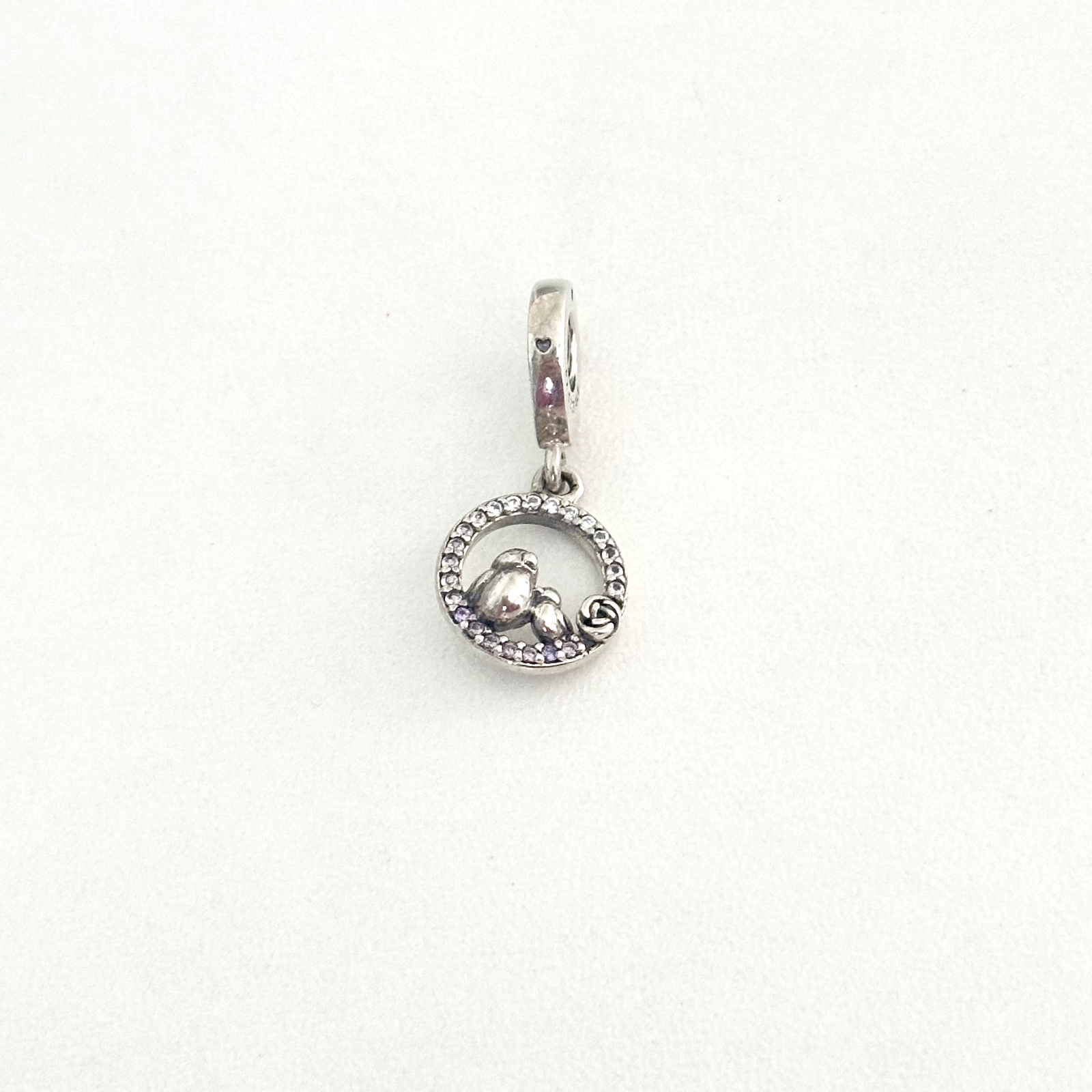 Pandora 925 Sterling Silver Mother & Baby Bird Purple CZ Round Dangle Bead Charm