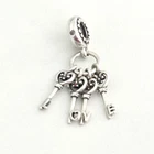 Pandora Sterling Silver Keys Of Love CZ Retired Heart Scroll Bead Dangle Charm