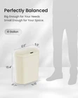 Touchless Simplicity: Wave your hand, and the lid opens like magic! Just install 2 batteries (not included), and you're ready to enjoy a cleaner, more hygienic way to manage waste with this automatic trash can Adorably Modern: Whether you need a bedroom trash can, a bathroom garbage can, or a waste basket for your office, this cute and sleek trash bin blends effortlessly into any modern decor, adding a touch of charm wherever it goes Space Saving Wonder: Designed as a slim trash can, it fits perfectly in tight spots like bathrooms, bedrooms, or office, this 4 gallon small trash can with lid is a lifesaver for cozy spaces Fresh & Odor-Free: Say goodbye to unpleasant smells! This bathroom trash can with lid that seals odors inside, keeps your home smelling clean and inviting all day long Sturdy & Waterproof: Crafted from strong PP+ABS material, this motion sensor trash can features a waterproof design that’s built to endure everyday use. It’s reliable, easy to clean, and perfect for keeping messes at bay