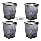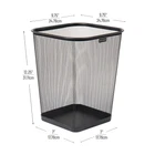 Sleek and Functional Mesh Waste Bins: Stay Organized in Style This set of four metal mesh garbage bins is ideal for offices, kitchens, and bathrooms, these bins incorporate an airy mesh design that promotes airflow, reducing odor build-up. Each bin features a solid metal edge at the bottom, ensuring any small amounts of liquid are contained, preventing spills and messes. Constructed with reinforced steel mesh at the top and bottom, these bins are sturdy and durable. The smooth rounded lip at the top adds a touch of elegance, combining practicality with style. This value set of four provides the perfect solution for your waste disposal needs across multiple spaces. The sleek, industrial, and modern aesthetic of these stainless steel mesh baskets is sure to complement any space. Promote recycling with these waste bins by easily separating metal and paper recyclables from non-recyclable waste. These bins are compact enough to fit under a desk or inside a cabinet. Although they can be used with small trash can liners. The semi-transparent mesh design provides a clear view of the trash level while effectively concealing unsightly waste. Coordinated and Functional: This set of four mesh garbage cans is designed to create a coordinated and stylish look in your home or office space Ventilated Mesh: The mesh design of these garbage cans allows for proper airflow, preventing unpleasant odors and promoting freshness Premium Stainless Steel Construction: Each garbage can is made from high-quality stainless steel, which provides durability and a sleek, modern appearance. The lightweight construction makes it easy to move and handle Generous Capacity: With a capacity of 5 gallons (18.92 liters) per garbage can, you can easily dispose of a significant amount of trash without frequent emptying Convenient Dimensions: Each garbage can features an opening measuring 9.75 inches long x 9.75 inches wide x 12.25 inches tall (24.76 x 24.76 x 31.11 centimeters), providing ample space for trash disposal while maintaining a compact size