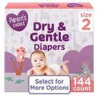 About this item Parent's Choice Dry & Gentle Diapers Size 2 DryNOW channels absorb quickly to help keep skin dry and healthy Wetness indicator changes colors Made from extra-soft breathable materials for ultimate comfort Dermatologically tested Wiggle-proof leak barriers Products not tested on animals