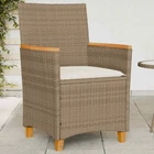 Patio Chairs with Cushions Outdoor 2 Pcs Poly Rattan and Solid Wood vidaXL vidaXL