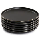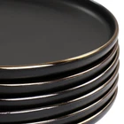 Add a beautiful accent to your dining table with the Paul 6 Piece Round Stoneware Salad Plate Set in sophisticated Matte Black with Gold Rim Trim. Each piece is creatively crafted with a unique flat base, raised rim and trimmed in gold. Beautifully finished off with a thin elegant gold rim, this set is a statement piece. Constructed of Stoneware, these salad plates are ideal for special occasion gatherings and sturdy for every day use. Each plate is microwave safe for quick reheating and dishwasher safe for easy cleaning. Mix an match with new pieces and pieces you've collected over the years. Material: Stoneware Color: Matte Black Pattern: Flat, Raised Rim, Gold Trim Shape: Round Microwave Safe Item weight: 20.0 pounds