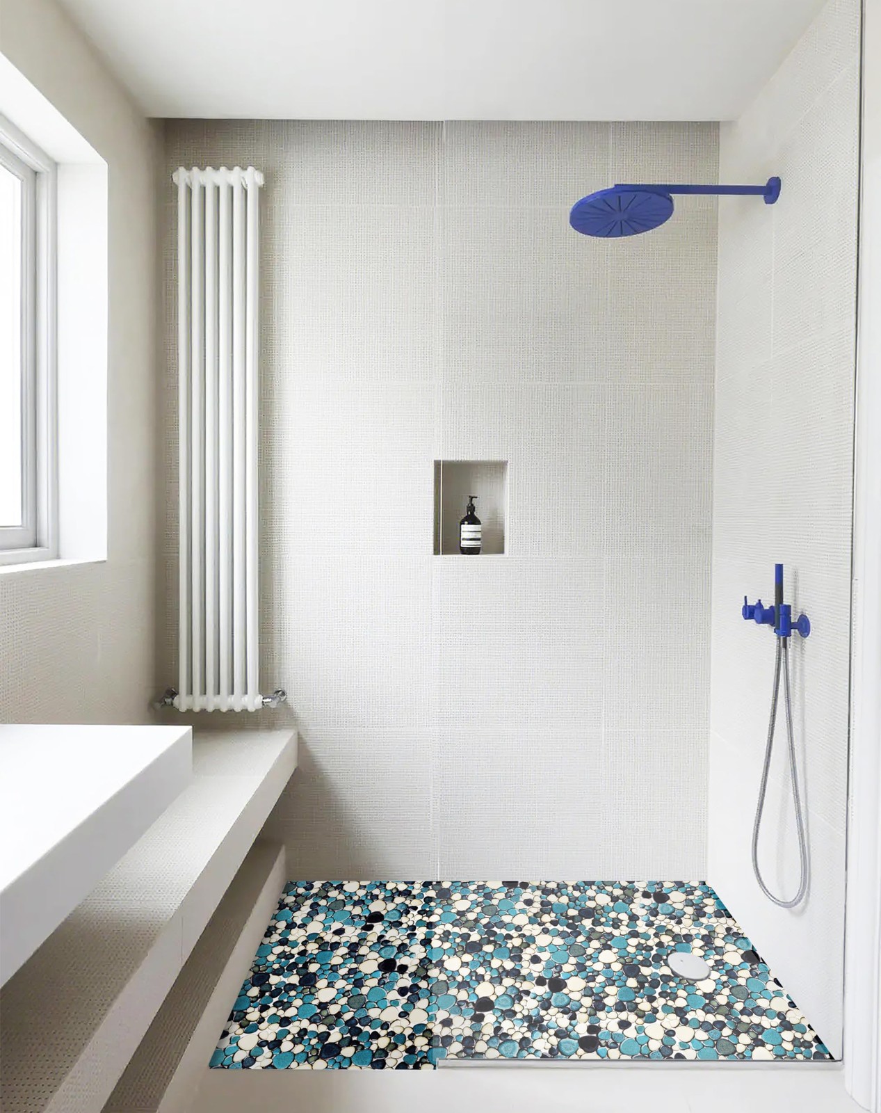 Whole box 5 sheets turquoise ceramic pebble tiles cover 5 sq.ft. Each sheet of the ceramic tile is in 12 x 12 inches, 6 mm thickness, weighted around 2 lbs High-quality material - Pebble mosaic tile is made under a high temperature kiln, smooth and bright glaze, not easy to fade, durable, non-slip, waterproof and high temperature resistance Multipurpose - Suitable for both indoor and outdoor areas, ceramic mosaic tiles can be used as bathroom tiles, shower floor tiles, also for kitchen backsplash, accent wall tiles, bars, spa, swimming pool, etc Easy to cut - Mosaic adheres to a durable mesh backing that can be cut to the desired size. Not peel and stick tiles Easy to clean and maintain - Pebble tiles are stain resistant, once there is a stain, just wipe with a damp cloth to clean About Installation - All mosaic tiles product should be sealed after grouting for best result. Once installed, it will last a lifetime with no peeling issues Meticulous service - Sturdy, durable, non-polluting, and only the best quality ceramic materials are used, as we check the tiles for defects before shipment Eye-catching design - The pebble design and turquoise color of the tile create an eye-catching and unique appearance that can enhance any interior or exterior design Environmentally friendly - Porcelain tiles are made from sustainable materials and can be recycled, making them an environmentally friendly choice Sincere reminder - It is recommended that you order at least 10% more in total square footage of tile to account for overages due to cutting mistakes and tile pattern fit Product size - Each sheet of the ceramic tile is in 12 x 12 inches, 6 mm thickness, weighted around 2 lbs. Whole box 5 pebble tiles cover 5 sq.ft High-quality material - Blue tile are glazed porcelain tile which designed as pebble shapes, pebble tile is made under a high temperature kiln, smooth and bright glaze, not easy to fade, durable, non-slip, waterproof and high temperature resistance Easy to cut and install - The porcelain pieces are adhered to a durable mesh backing to make these mosaic floor tiles easy to install. NOT peel and stick. Once installed, it lasts lifetime, no falling off issues. The back mesh is made of plastic fibers and can be cut to fit the size required Multipurpose - It has a uniform shade variation and glossy glazed surface finish that looks beautiful in any room. Suitable for both indoor and outdoor areas, pebble tiles can be used as bathroom tiles, also for kitchen wall backsplash, bars, spa, swimming pool and so on Meticulous service - It is strong, durable, contamination free, and only the best quality tiles are used as our tiles are inspected for blemishes before shipment. Ceramic Mosaic Usage: Suitable for both indoor and outdoor areas, ceramic tiles can be used as bathroom tiles, shower floor tiles, kitchen backsplash tiles, fireplace tiles, accent wall tiles, bars tiles, spa tiles, pool tiles, and swimming pool tiles, etc. Their smooth, easy-to-clean surface of the ceramic mosaic tile ensures maintenance is a breeze, making them perfect for high-traffic areas like kitchens and bathrooms. which makes them perfact be used as floor tiles and wall tiles, like bathroom sink tiles waterproof, bathroom shower accent tile, bathroom wall tiles for shower. The Pebble tiles can also be used as outdoor ceramic tile, such as outdoor floor tiles, outdoor shower tiles, outdoor stone wall tiles, garden path stone pebbles. These's no slippy issue after grout. It's safe to use the pebble stone tile as non slip floor tiles for bathroom shower. This porcelain flooring tile mosaic is unique designed. The special aqua teal blue color ceramic tile is a great match for all your deco style.